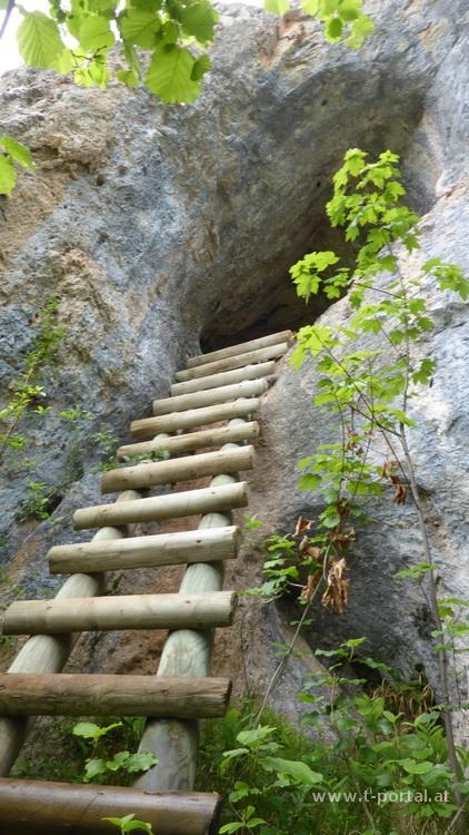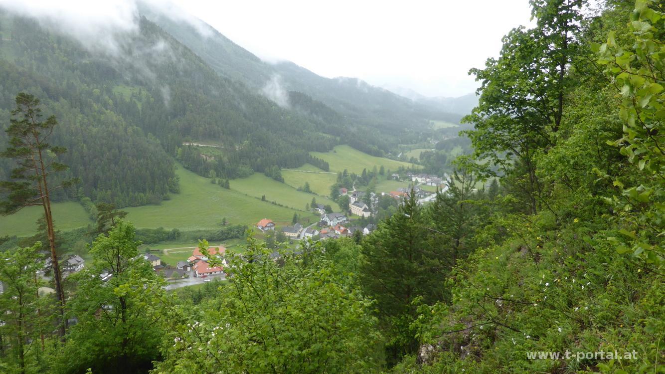 Das Wetter bereitet mir in letzter Zeit ziemliches Kopfzerbrechen. Am ganzen verlängerten Wochenende soll es mehr oder weniger regen, am wenigsten nass ist es vielleicht heute. Darum mache ich mich auf zu einer kleinen Tour bei Schwarzau im Gebirge. Bei der Fahrt Richtung Süden wird es immer düsterer und es regnet auch bald mehr oder weniger. Ich starte trotzdem beim geschlossenen Gasthof Gruber zur Herren- und Frauengrotte, wenn es wirklich schlimm wird, hab ich zumindest hier vorbei geschaut. Der Weg startet kurz hinter dem Gasthof, der Wegweiser zeigt nach links Richtung Herrengrotte. Es geht in einigen Kehren den Wald hinauf, bis ich auf eine Forststraße treffe, von hier noch über einige Stufen bis zur großen Grotte. Als ich wieder raus blicke, schaut es fast nach weniger Regen aus, ein paar Minuten später wird es wieder mehr. Es geht zurück zur Forststraße und nach wenigen Metern führen zwei Leitern hoch zur Frauengrotte. Diese ist deutlich kleiner, dafür gibt es einen Durchblick auf die andere Seite. Nun wieder retour und im wechselnd leichten bis mittelstarkem Nieselregen auf der Straße weiter.
