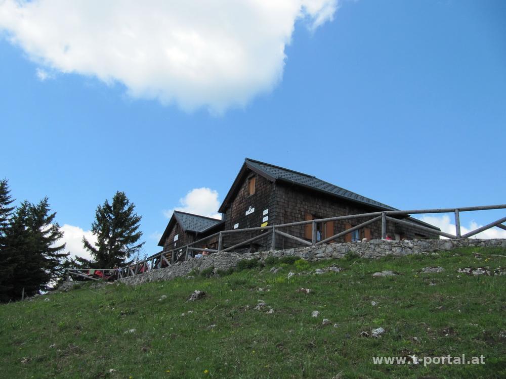 Am Höger war ich noch nicht, also muss ich da mal rauf. Als Startpunkt wähle ich die Bahnstation in Furthof. Von hier führt zuerst eine Asphalt und dann eine Forststraße in den Wald. Nach knapp 30 Minuten Wanderung entlang des Högerbachs geht's nach rechts in den Dachsgraben. Nun etwas feuchter bergauf, über eine Wiese und ein paar Mal die Forstraße querend. Inzwischen Ausblick runter nach Furthof und rüber zu Reisalpe und Hinteralm. Bald geht es über einen kalgeschlagenen Berghang in Serpentinen hinauf - der wohl anstrengstene Teil der Route. Oben angekommen trifft man auf den Weg, der von Gschwendt/St. Aegyd/usw. rauf führt. Von hier sind es noch etwa 15 Minuten bis zur Hütte und dem Gipfelkreuz. Ich raste kurz und mache ein Selfie mit Kreuz.