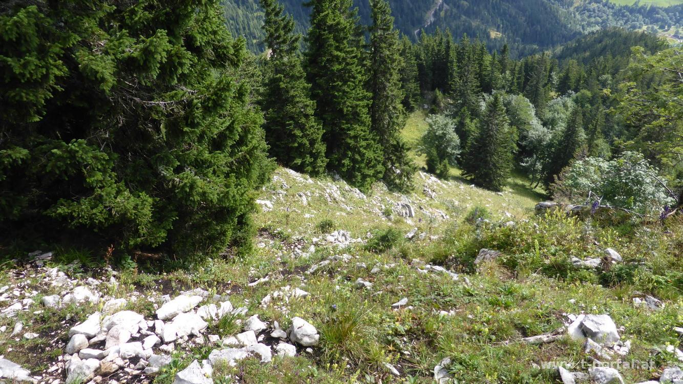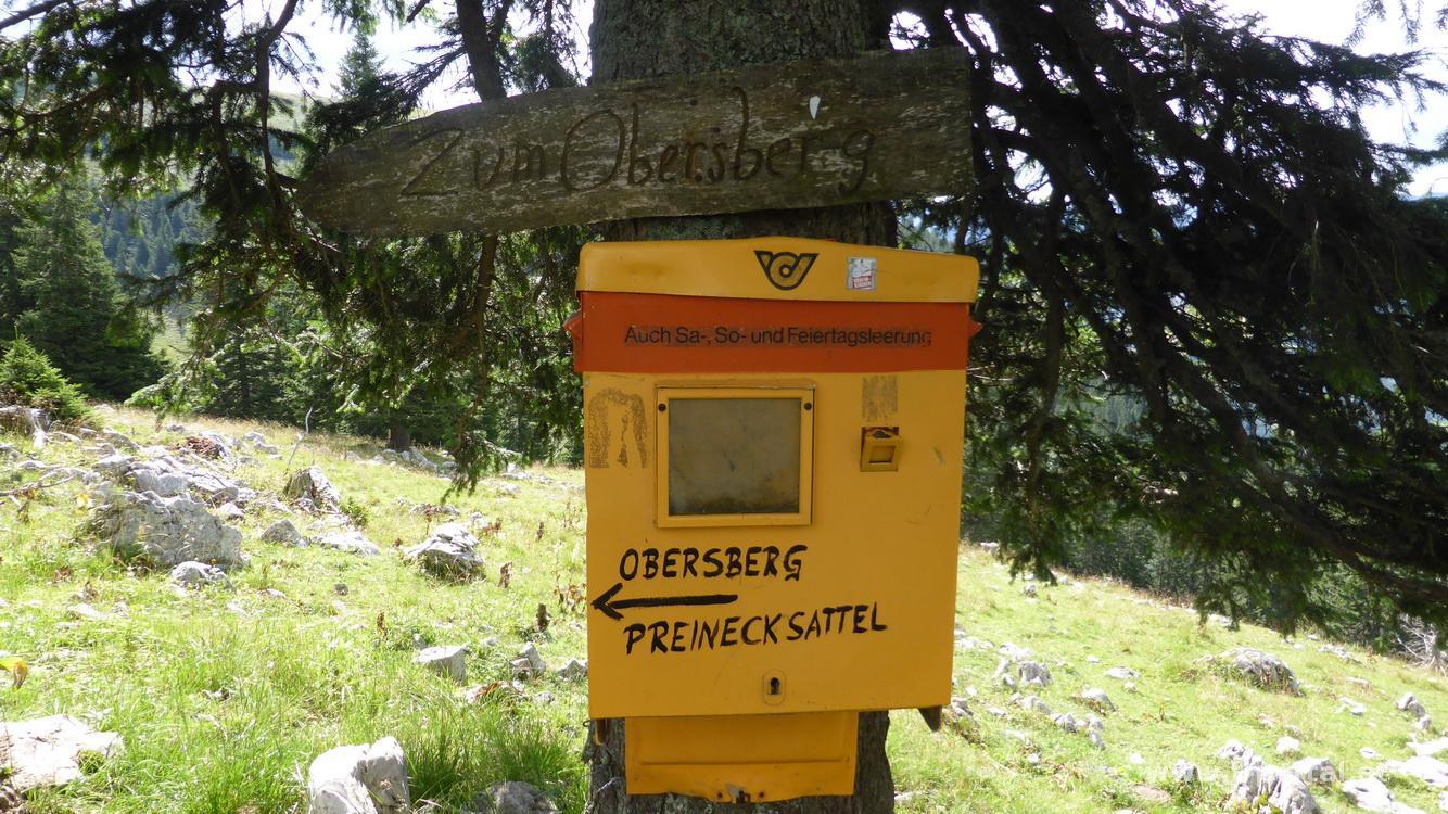 Von hier kommen die Wanderer, die die komplette Überschreitung von Schwarzau über den Obersberg bis zum Göller machen, aber auch der Abstieg ins Preintal ist hier möglich. Für mich geht es weiter nach rechts und nach einer kurzen leichten Passage wird es echt anstrengend: Zwischen Steinen geht es ziemlich direkt zum Gipfelkamm. Teils ist es etwas rutschig und so muss ich schon auf die Schrittfolge achten. Nach ein paar mal Schnaufen steh ich so am Kamm der Gippelmauer und nun geht es zwischen den Latschen bis zum Gipfel des Schwarzauer Gippels. Kreuz gibt's hier keines, man muss den höchsten Punkt schon selbst erkennen (oder am Navi sichten :-) ). Nun geht es ein Stück bergab bis zum Gippeltörl. Hier mache ich einen Abstecher zur Gippelalm, wo ich herzlich empfangen werde und mich mit kühlem Getränk erfrische. Nach kurzer Rast und netter Plauderei geht's über den Hang unmarkiert wieder Rauf zum Kamm, vorbei an ein paar Kühen und zum letzten Anstieg vor dem Gipfelkreuz.