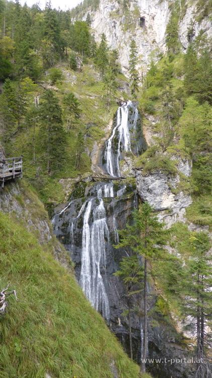 Nach der Tour auf den Geiger habe ich noch Zeit für einen Abstecher in die Palfauer Wasserlochklamm. Diese führt zuerst über eine 21 Meter hohe Hängebrücke und dann auf Steigen und Stegen bergauf. Es geht vorbei an fünf Wasserfällen mit ingesamt 152 Metern Fallhöhe. Das letzte Stück geht es auf Schotterpfad vorbei beim Ohrwaschelbaum bis zu einer Unterstandshütte. Der Zugang zum Wasserloch ist derzeit leider gesperrt. Nach einer Pause geht's am gleichen Weg retour.