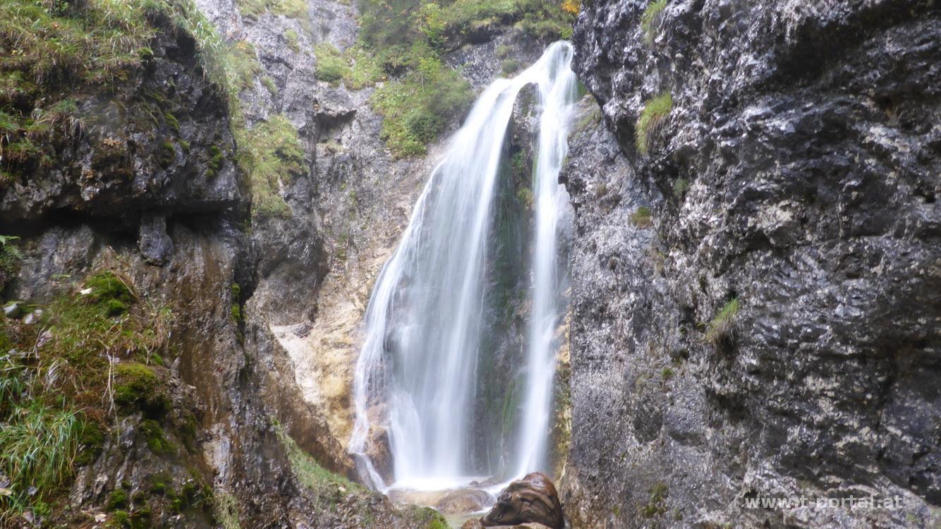 Nun geht es retour zum Abzweige am Hüttenkogel. Von dort folgt ein zuerst steilerer Abstieg über Erde und Fels und dann ein Waldweg Richtung Tal. Das letzte Stück verläuft auf einer Forststraße und nochmal einer Waldpassage. Kurz vorm Ausgangspunkt biege ich noch zum Marienwasserfall ab. Im Abstieg ist der Regen wieder deutlich weniger geworden und im Tal nieselt es nicht wesentlich mehr als beim Start. Den Geocache als Ziel des Tages habe ich gefunden und auch das zweite Ziel - nicht auszurutschen und am Hintern zu landen war geschafft. Die Tour würde ich trotzdem eher bei Schönwetter empfehlen, da gibt es auch wesentlich bessere Aussicht.
