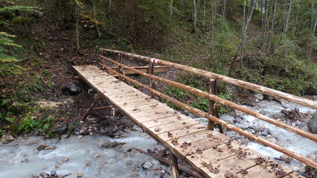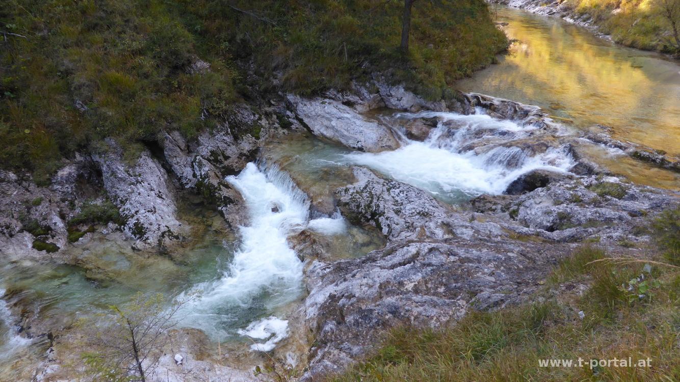 Beim Schleierfall stärke ich mich nochmal mit den letzten Mannerschnitten, dann beginnt der Rückweg entlang des Ötscherbaches. In den hinteren Ötschergäben war ich schon länger nicht mehr, den Weg hatte ich noch etwas naturbelassener als der vordere Teil zwischen Wienerbruck und Ötscherhias in Erinnerung, inzwischen gibt es aber auch schon mehr Passagen mit Seilsicherung. Insgesamt liegen noch ca. 10km Rückweg vor mir, die ich ohne große Pausen hinter mich bringe. Es geht vorbei am Mirafall und Ötscherhias bis zum Kraftwerk in Wienerbruck. Nun folgt der für mich bisher unbekannte Weg entlang der Erlauf durch die hinteren Tormäuer. Durch das Kraftwerk gibt es hier anfangs wenig Wasser, durch diverse Quellen und Wasserfälle wird dies bald wieder mehr. Die Schlucht ist etwas breiter als die Ötschergräben, der Pfad ist ähnlich, jedoch sind weniger Stege notwendig. Noch einmal geht es an einem schönen Wasserfall vorbei und nach kurzem auf und ab erreiche ich den Ausgangspunkt lange genug vor Sonnenuntergang.