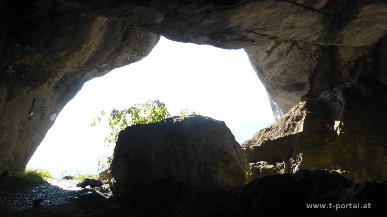 Nach einigem hin und her erreiche ich den Kammweg. Beim nächsten Wegweiser biege ich aber nicht gleich auf den Rauhen Kamm ab, sondern besuche die beiden Ötscherhöhlen. Der Abstieg gestaltet sich etwas mühsamer als gedacht, zuerst ein Stück steil hinunter, dann meist auf schrägem Pfad entlang der blau-weißen Markierung. So geht es ca. 100 Höhenmeter hinab bis zum Geldloch. Nachdem ich weder die passende Ausrüstung noch Mitstreiter dabei habe, staune ich nur über die Eingangshöhle und wage mich nicht weiter hinein. Dafür gibt es eine längere Pause, da ich die Jause nicht über den Kamm tragen will. Während der Rast habe ich einen tollen Ausblick rüber zur Gemeindealpe und einer breiten Nebelfront dahinter, sowie zu diversen Hügeln Richtung Heimat. Nun geht es retour zum Kamm, unterwegs schau ich noch im Taubenloch vorbei. Es folgt der Anstieg am Rauhen Kamm, heute ist besondere Vorsicht geboten, da viele Steine am ersten Teilstück aufgrund des Sonnenmangels nass und rutschig sind. Auch sind an so einem schönen Tag natürlich viele Leute unterwegs. Ich komm ganz gut voran und kann mich heute sogar ins Gipfelbuch am Herrenstand einschreiben (letztes Mal war es entweder voll oder nicht vorhanden).