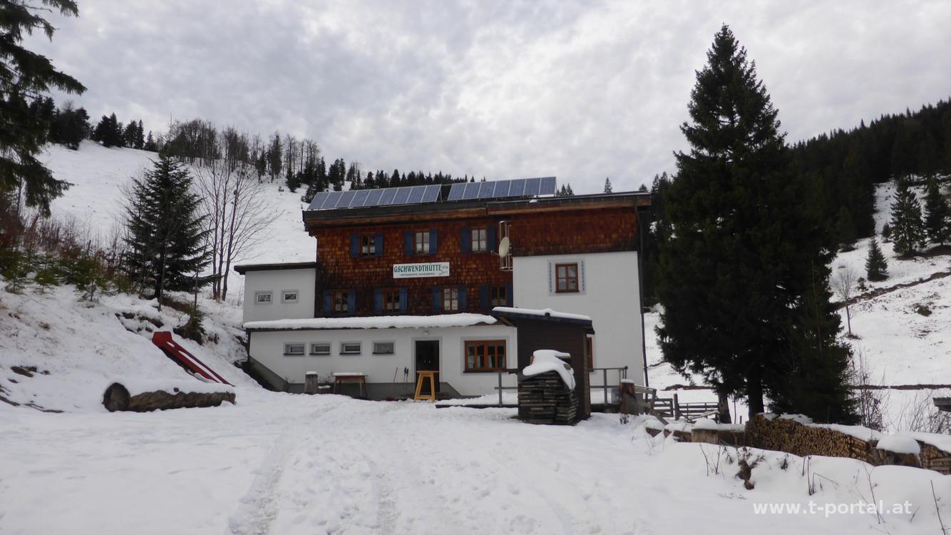 Danach geht es am Weg noch ein Stück weiter und vorbei an der Grabneralm wieder retour. Noch einmal nehm ich die ~100hm für die Linsbergüberschreitung in Angriff und rutsche dann durch den Schnee hinunter zur Gschwendhütte. Hier hab ich noch Zeit für eine schnelle Stärkung und treffe die beiden Wanderer vom Vormittag wieder. Als Abstiegsweg nehme ich die Variante über die Bergerhöh. Diese führt mich vom Parkplatz, kurz unterhalb der Gschwendhütte, nochmal ein Stück hinauf und dann über etwas Schnee, durch mehr oder weniger dichten Wald retour. Das Letzte Stück geht es schon etwas dunkel im Zick-Zack runter zum Friedhof in Hohenberg und von dort in ein paar Minuten zum Ausgangspunkt.