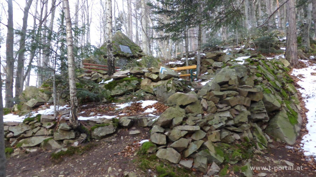 Am Rückweg ist der Schnee durch die heutige Wärme schon deutlich weniger geworden, dafür mache ich noch einen Abstecher zum Türkenstein. Von dort wäre es zwar nicht mehr weit bis zur Bundesstraße, die nützt mir aber wenig und so geht's wieder rauf und zurück zum Ausgangspunkt. Bei fast jedem Wetter eine nette Runde, ich komme wieder.