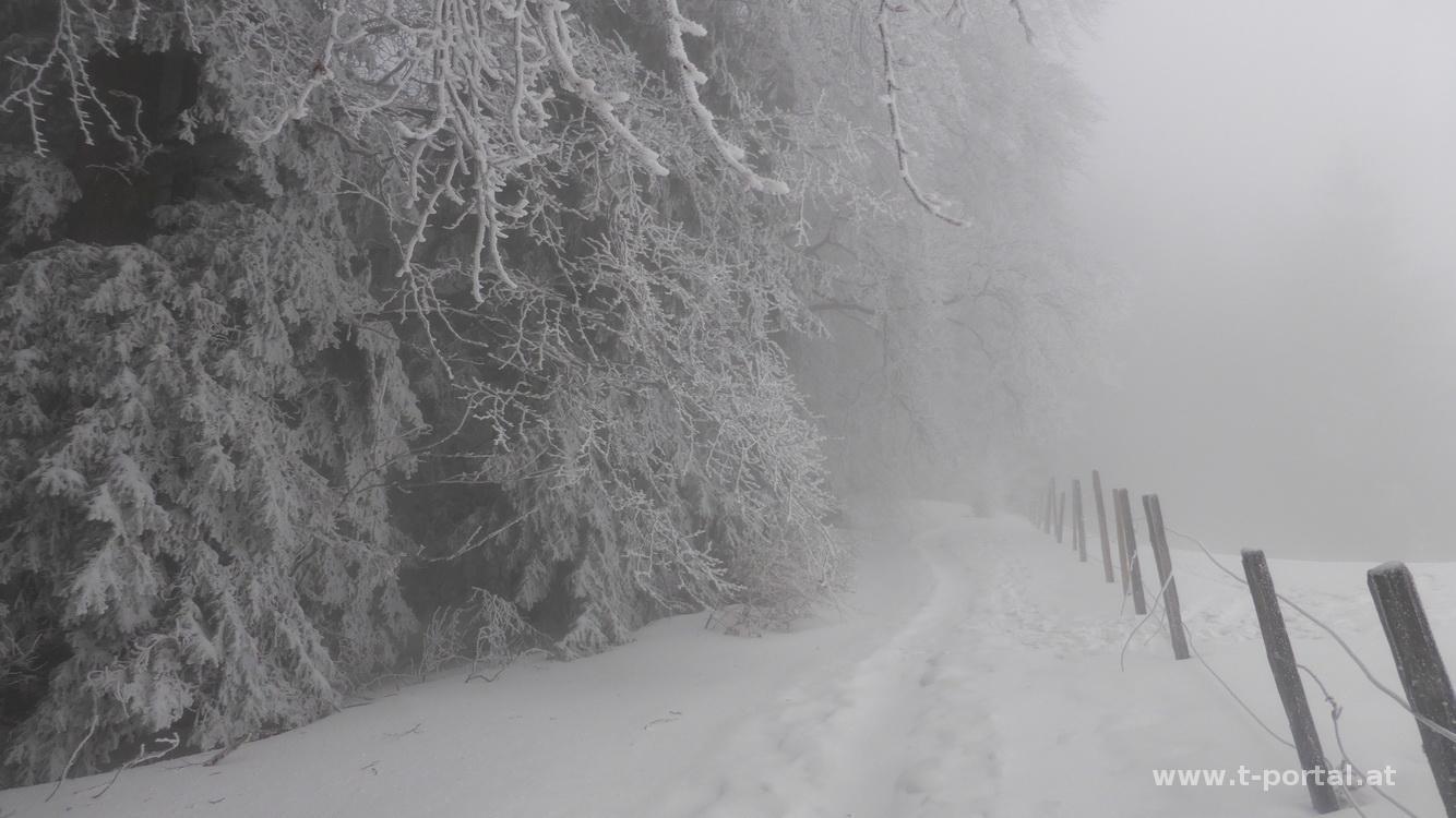 Ich hab mir vor einigen Wochen Schneeschuhe gekauft, jedoch motivierte mich das Wetter der letzten Wochenenden nicht zum Testen. Heute ist es zwar auch nicht besser, aber sonst wir das nie was :-) Drei Wochen früher als letztes Jahr starte ich eine Tour auf die Reisalpe - und eigentlich ist es auch die gleiche Route wie damals. Vom Hauptplatz in Kleinzell geht es auf blauer Markierung Richtung Kleinzeller Hinteralm. Schnee gibt es zwar, jedoch nicht wirklich viel. Dafür ist es neblig und auf den freien Flächen ordentlich windig. Ab der Hinteralm nehme ich die Schneeschuhe zu Hilfe und komme über den Harsch gut voran. Nach dem bekannten Anstieg stehe ich wieder einmal am Gipfel der Reisalpe, von dem ich heute nicht mal bis zum Schutzhaus sehe.
