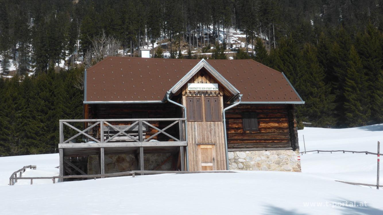 Die Tour auf den großen Sonnleitstein ist sich letztes Jahr nicht ausgegangen, darum kommt sie dieses Frühjahr dran. Start in Hinternasswald - von dort den Wegweisern nach auf einer Forststraße dahin. Diese ist auch ein gutes Stück geräumt, danach folge ich einigen wenigen Spuren über den Schnee. Die rot-weißen Markierung führt mich auf einen Abschneider durch den Wald, der mich wieder auf die Forststraße bringt. Nach einer Linkskurve bei einem kleinen Wasserfall geht es richtig los. Durch Schnee geht es steiler hinauf Richtung Ameiswiese. Hierbei versinke ich einige Male ordentlich im Schnee, die Hanglage macht die Schneeschuhe jedoch sinnlos. Bald wird es wieder flacher und es geht neben einem verschneiten Bachlauf und durch Wald weiter. Ich erreiche die Forsthütte auf der Ameiswiese wo ich mir die Sonne auf den Kopf scheinen lasse.