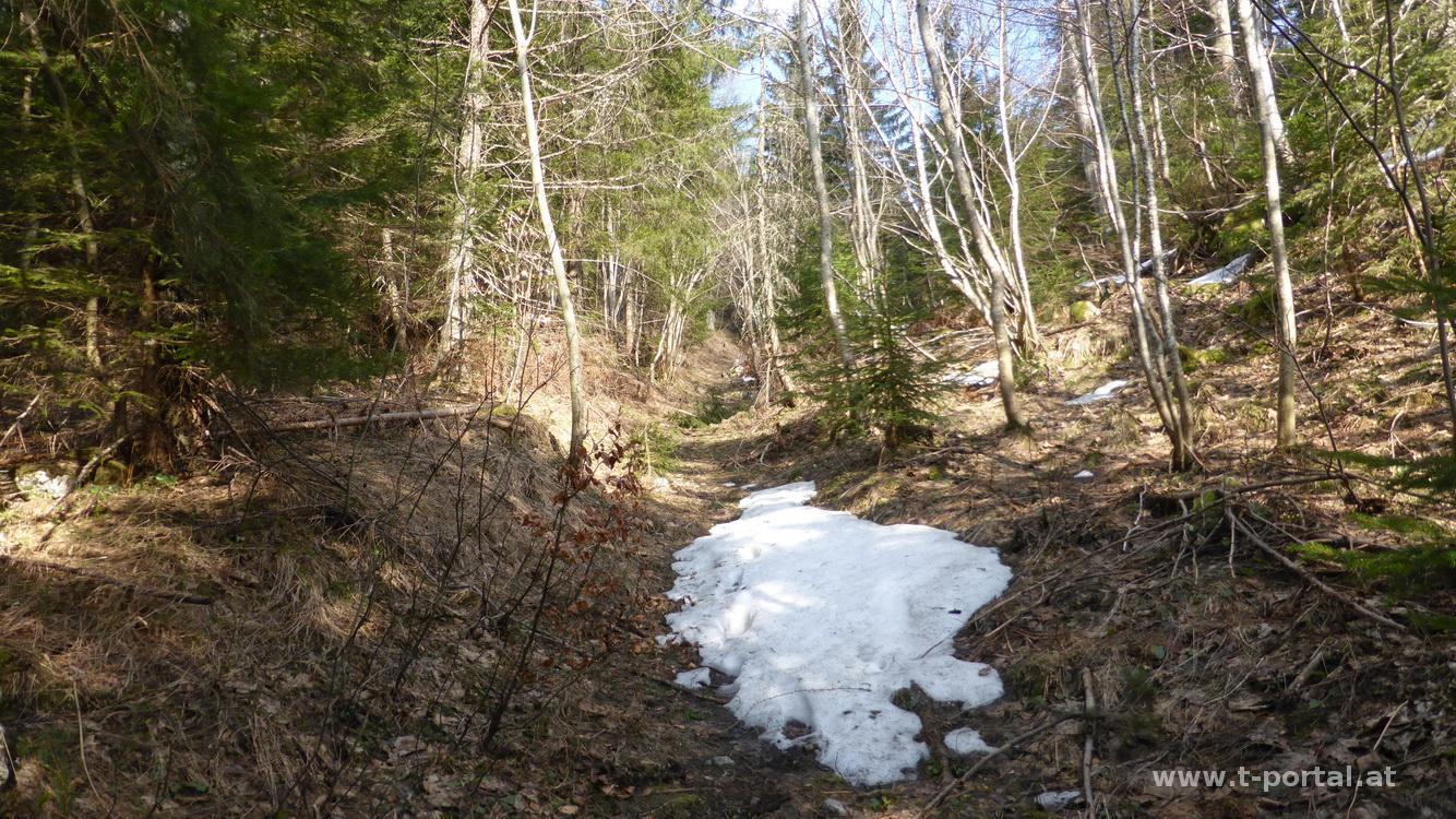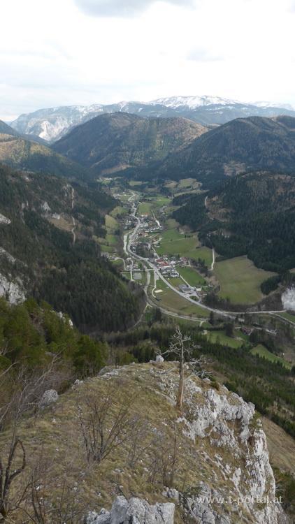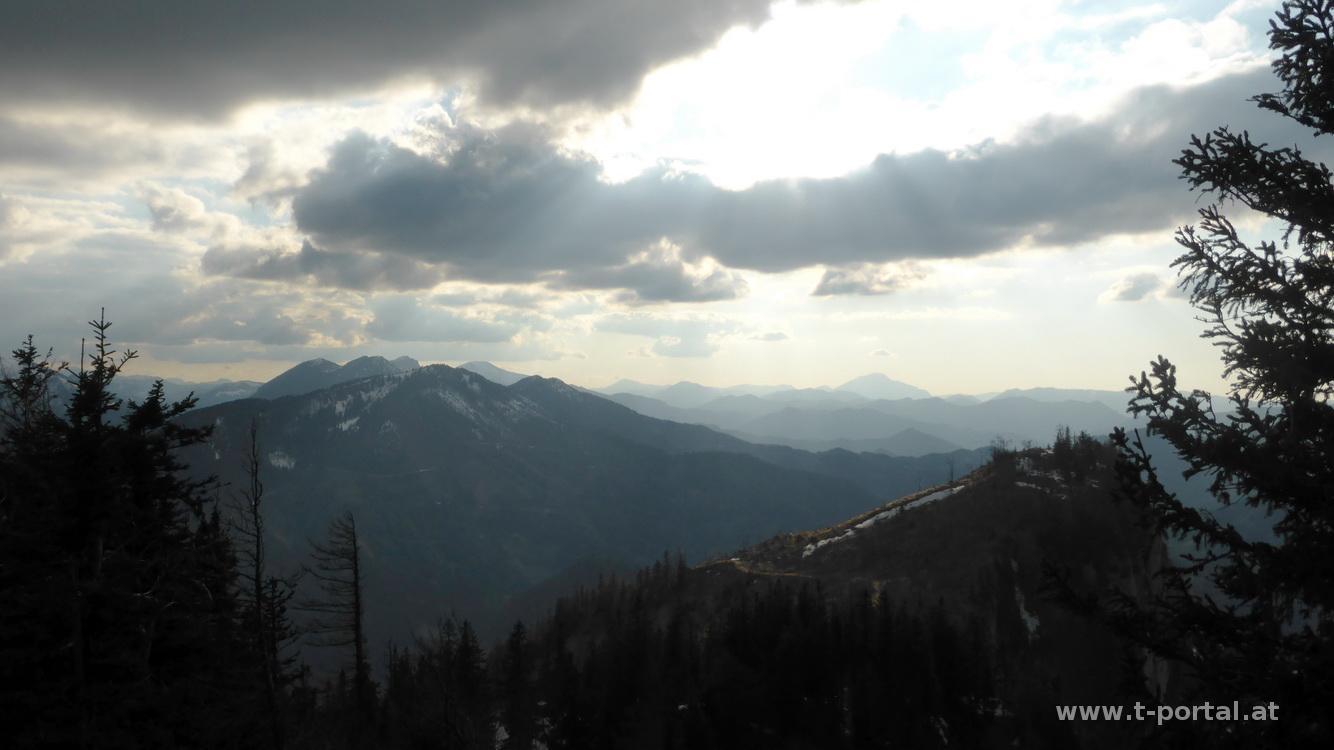 Für Freitag Nachmittag eine Tour gesucht und diese gefunden. Anders als letztes Jahr regnet es nicht und ich sehe meine Ziele deutlicher. Start wieder beim Gasthof Gruber, von dort bergan und zur Herren- und Frauengrotte mit ersten Ausblicken zum Falkenstein und Obersberg. Weiter auf Forststraßen und Waldwegen immer auf und ab bis ich zum Falkenstein abbiege. Auch hier toller Ausblick vom Schneeberg bis zur Reisalpe. Weiter geht auf Forststraßen und Waldpfaden bis zum letzten Anstieg zum Handlesberg. Vorher biege ich aber noch ins Gebüsch ab und steige weglos zur Freudentaler Mauer auf. Hier gibt es nur ein Steinmännchen und gutem Ausblick zum letzten Ziel. Dieses erreiche ich nach kurzem Ab- und Aufstieg durch Schneereste.