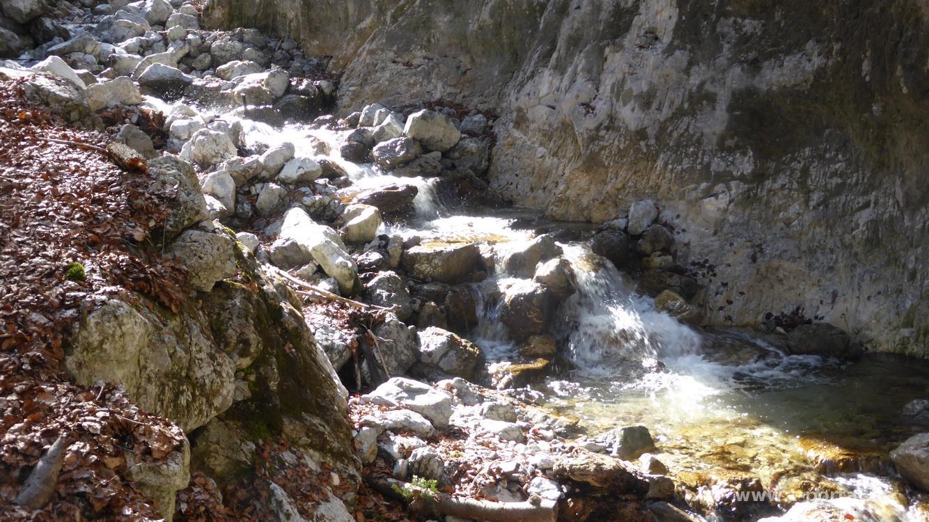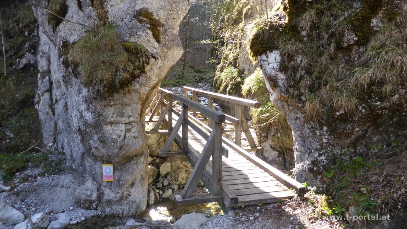 Auf der anderne Seite des Hügels geht es etwas hinunter und zurück zu einer Forststraße, die ich aber gleich wieder verlasse und über eine Wiese auf den Tirolerkogel aufsteige. Bald erreiche ich das geschlossene Annabergerhaus (Urlaub bis 6.5.), das mit einer großen Terrasse erweitert wurde. Am Gipfelkreuz raste ich etwas und genieße die Aussicht bis ins Gesäuse. Anschließend geht es weiter zum Gedenkkreuz am Hügel gegenüber, dann ein Stück hinunter und wieder hinauf auf den Lindkogel. Nun über Wiesen weiter bis zu einem Durchgang und zum Abstieg ins Dachsental. Dieser führt mich gemütlich durch Wald hinab, über einige Forststraße und vorbei an verfallenen Almhäusern. Ich erreiche die Forstautobahn, die mich das letzte Stück ins Tal bringt, wo ich mich an der Abzweigung nach rechts wende und zum Einstieg der Falkenschlucht gehe. Bei traumhaftem Wetter geht es durch die Schlucht, Wasser gibt es genug und so gibt es tolle Bilder. Im oberen Teil liegt noch etwas Schnee neben dem Weg.