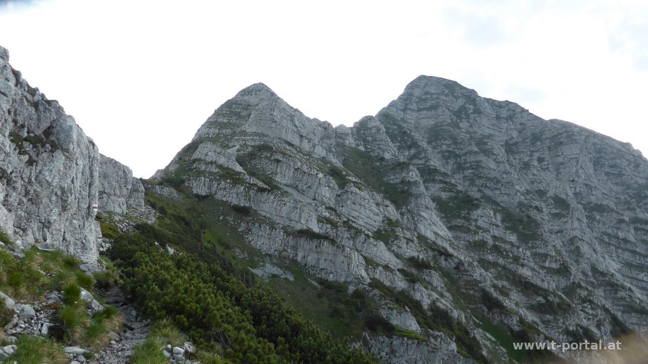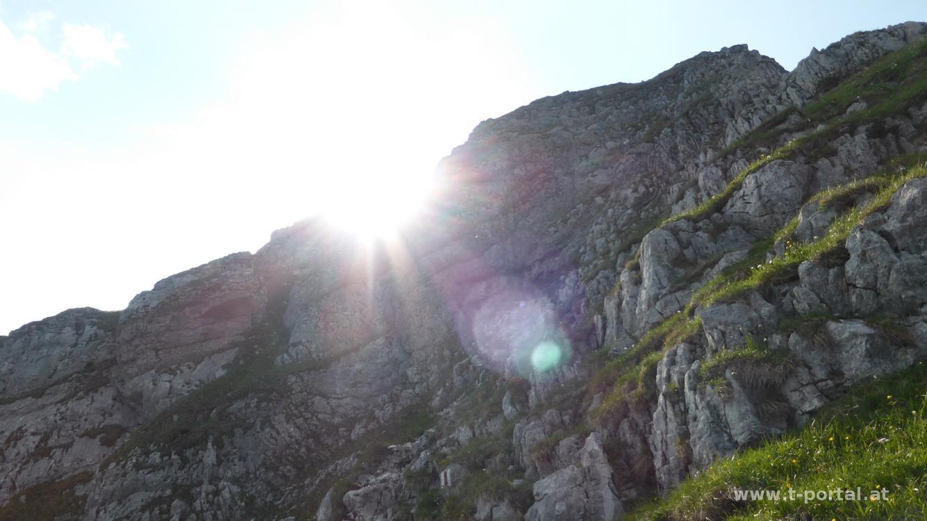 Nach kurzer Pause geht es über die Felsen bergauf, an einigen Stellen benötigt man immer wieder die Hände, dazwischen gibt es steiniges Gehgelände. Anders als sonst ist heute gar nichts los und somit gibt es auch keinen Gegenverkehr. Heute bleibt auch das Wetter schön und ich muss mir keine Sorgen um Gewitter machen. Nach dem letzten Anstieg ist der Herrenstand mit dem Gipfelbuch erreicht, dann geht es weiter zum Gipfelkreuz.