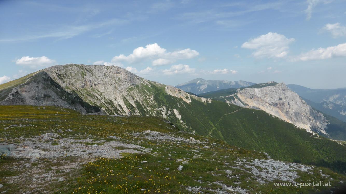 Nachdem ich mit unlängst mit Irene übers Wandern unterhalten haben, beschließen wir, eine gemeinsame Tour zu starten. Vom Preiner Gscheid geht es bei noch hitzigeren Temperaturen als gestern am Schlangenweg aufwärts zum Karl Ludwig Haus. Nachdem wir keinen Stress haben, sitzen und liegen wir heute mehr in der Sonne als wir uns bewegen. Nach kühlem Getränk in der Hütte dösen wir neben dem Raxkircherl vor uns hin.
