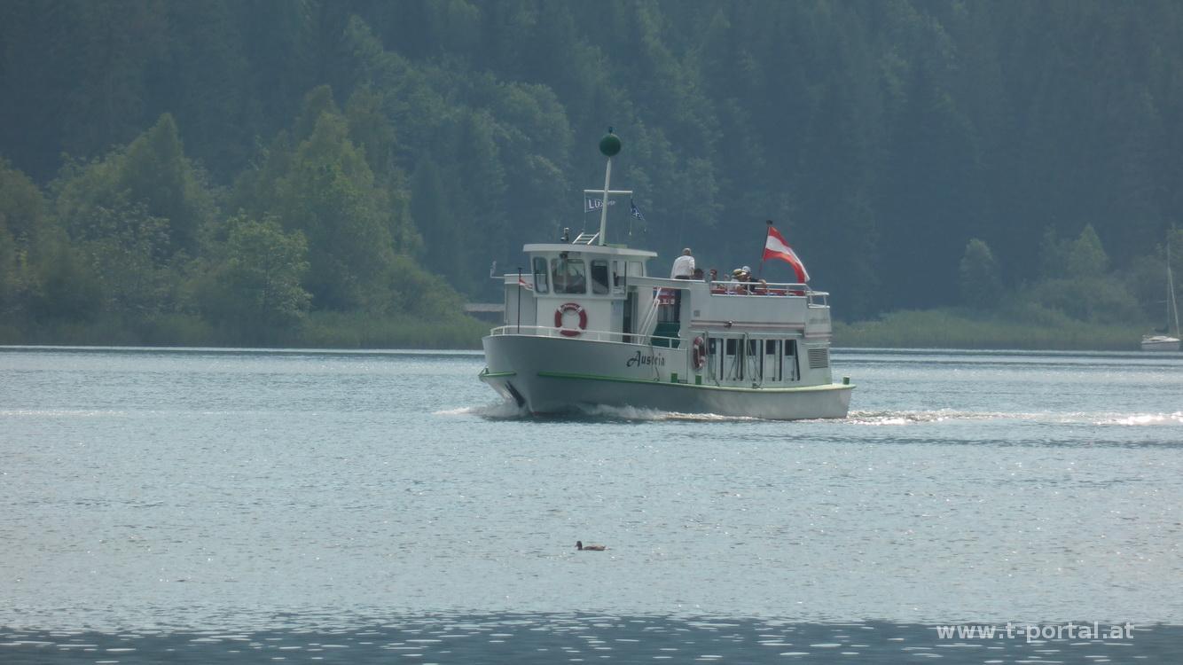Somit geht es sehr flott mäßig steil hinunter nach Zihagas. Immer wieder gibt es einen schönen Ausblick zum See, es sind jedoch noch einige Höhenmeter zu vernichten. Der weitere Abstieg wird dann etwas steiler, ich versuch trotzdem schnell weiter zu kommen. So erreiche ich nach 1h20 (statt 2h) die Schiffsanlegestelle in Neusach. Ein wenig mehr Zeit hätte ich mir ruhig lassen könne, da das Schiff eh verspätet ist :-) Auf der Rückfahrt genieße ich die Sonne und das klare Wasser des höchsten Bergsees von Kärnten. Zurück am Ausganspunkt hole ich mir meine Badesachen und hüpfe in den See - angenehm erfrischend nach der langen, schönen Tour!