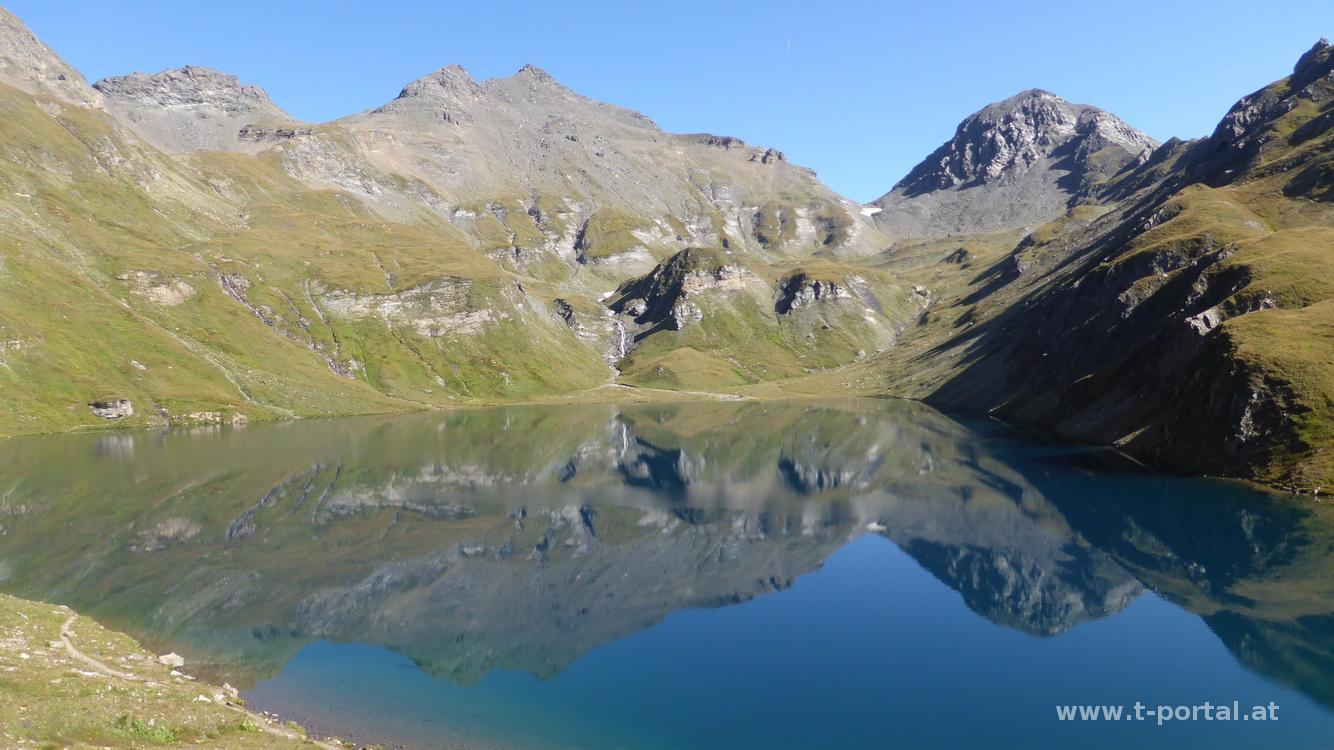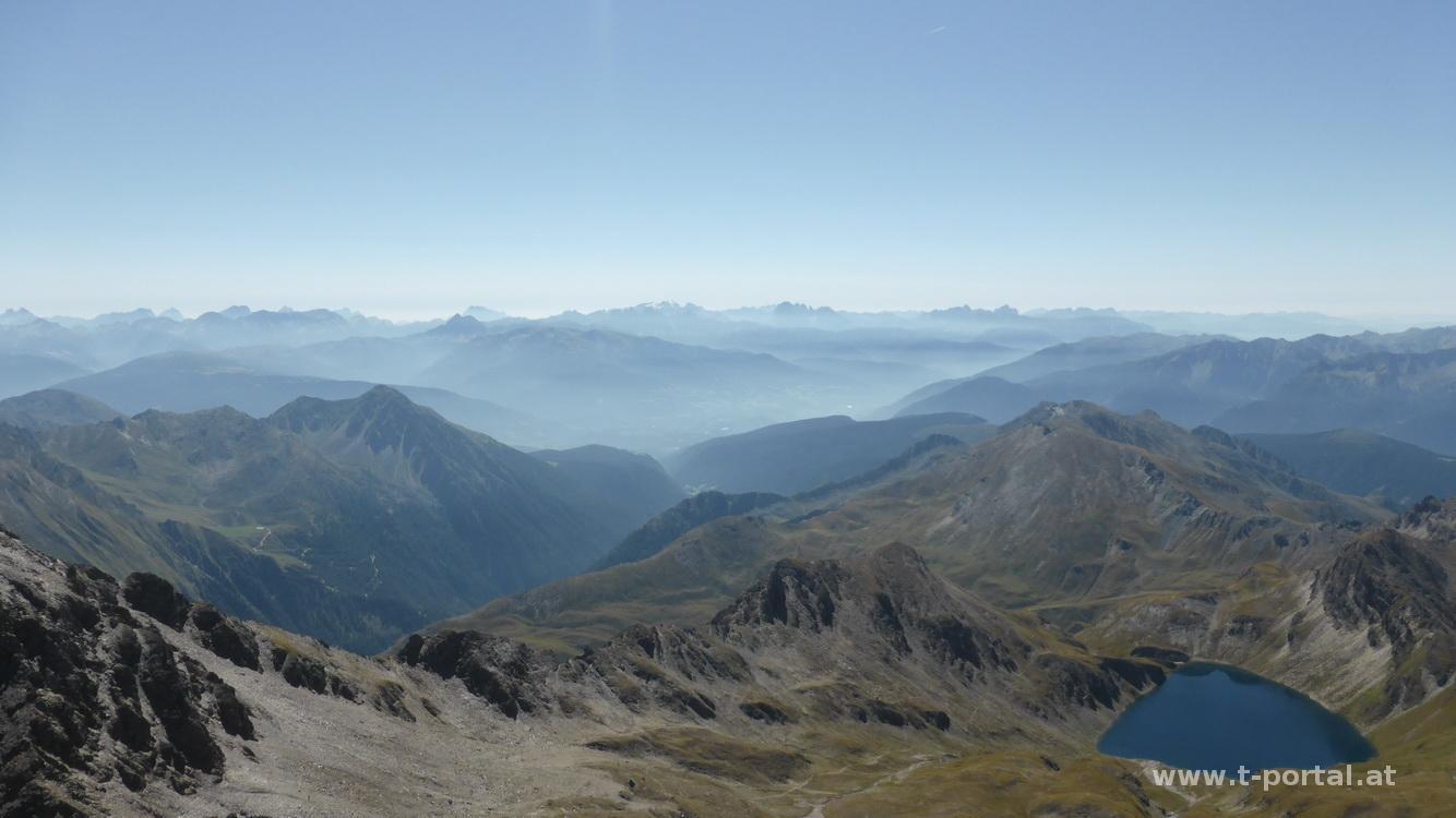 Auf dem gemütlichen Weg geht es immer weiter aufwärts, während der Ausblick auf die hohen Gipfel (Süd)Tirols immer besser wird. Vorbei an Almkühen und einigen wandernden Familien erreiche wird der Wilder See erreicht. In diesem schönen Bergsee spiegelt sich bereits das heutige Ziel des Tages. Nach Pause am See umrunde ich diesen, bestaune einen Wasserfall und steige auf bis zum Sattel am Rauhtaljoch. Beim Weg hierher habe ich bereits den weiteren Pfad auf den Gipfel erblickt, wo sich heute viele Leute tummeln. Auf den letzten gut dreihundert Höhenmetern heißt es etwas besser aufpassen, es geht über teils lockeres Gestein aufwärts und es kommen mir zahlreiche Wanderer im Abstieg entgegen. Eine gute halbe Stunde später stehe ich auf meinem ersten Berggipfel über 3000 Meter Höhe und blicke faszinierend auf das beeindruckende Panorama. Die wilde Kreuzspitze ist bei diesem Wetter ein toller Aussichtsberg in alle Richtungen.