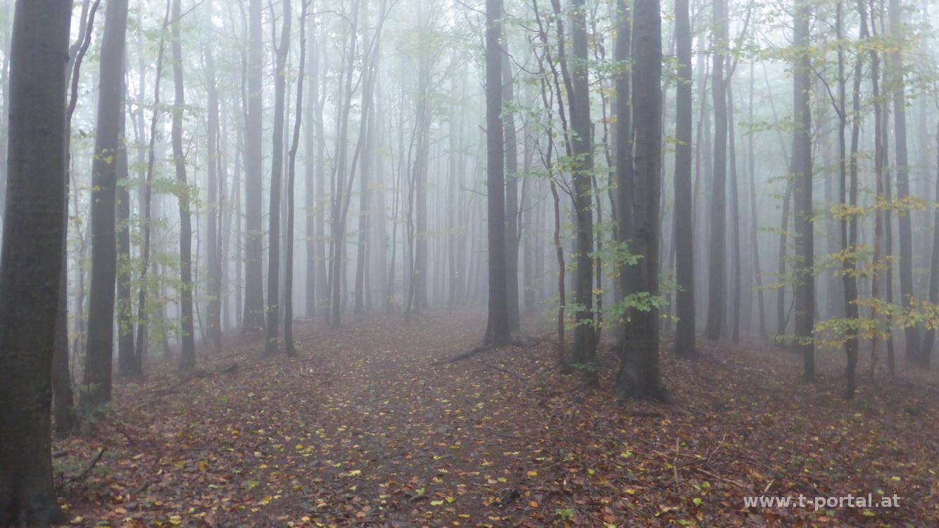 Günter und ich haben einige berufliche Themen zu bequatschen, das machen wir heute am Weg zum Schöpfl. Wir nehmen die klassiche Variante von der Klammhöhe, die ich schon in diversen anderen Touren beschrieben habe. Leider ist es heute sehr neblig, wodurch die Aussicht ausfällt. Dafür entschädigt das leckere Essen auf der Schöpflhütte.