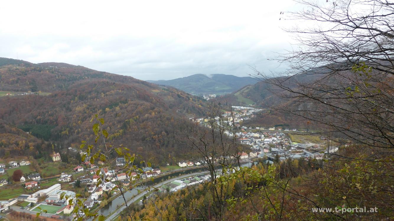 Obwohl es Zuhause regnet mache ich mich auf zu einer kurzen Tour auf den Muckenkogel. Bis ich dort ankomme hat der Regen nachgelassen und es nieselt etwas vor sich hin. Ich parke mein Auto kurz nach dem Krankenhaus in Richtung Stilles Tal und wandere von dort ein Stück die Forststraße entlang. Bald biege ich nach links Richtung Ulreichshöhe ab. Nun gemütlich durch den Wald über viel Laub bis zur Warte mit Ausblick ins Tal. Anschließend geht es weiter auf den Spitzbrandkogel, wobei hier immer wieder ordentlich der Wind bläst. Auf der anderen Seite des Kogels geht's hinab, über eine Wiese und zum Einstieg in den Jägersteig. Diesen folge ich bis zur Lilienfelder Hütte.