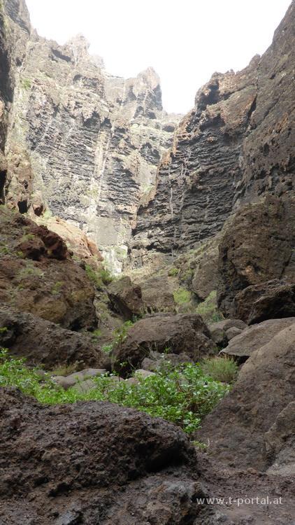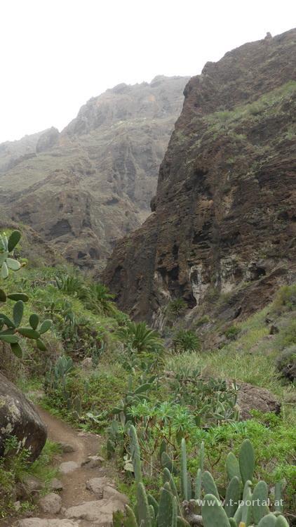 Die Masca Schlucht ist schon fast ein Pflichtziel, wenn man auf Teneriffa Wanderurlaub macht. Nach einer spannenden Anfahrt über eine Gebirgsstraße starte ich noch vor den Touristenströmen die Touren am Parkplatz kurz oberhalb von Masca. Vorbei an einigen Häusern geht es bald hinab in die Schlucht. Entlang von Bachläufen, hohen Felswänden, Kakteen, Palmen, Schilf und viel Gestein geht es hinab Richtung Meer. Hierbei sollte man auf jeden Fall festes Schuhwerk anhaben. An den schmalen Stellen ist die Schlucht nur wenige Meter breit, bis sie sich wenige Kurven später wieder weitet. Irgendwann hört man dann auch das Meer rauschen, bis es erreicht ist, sind jedoch noch einige Höhenmeter zu überwinden - praktisch, wenn man einen Höhenmesser mit hat :-)