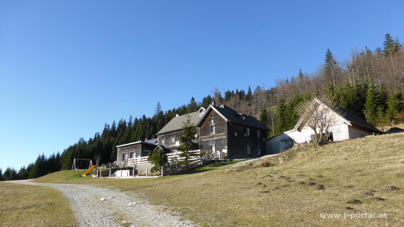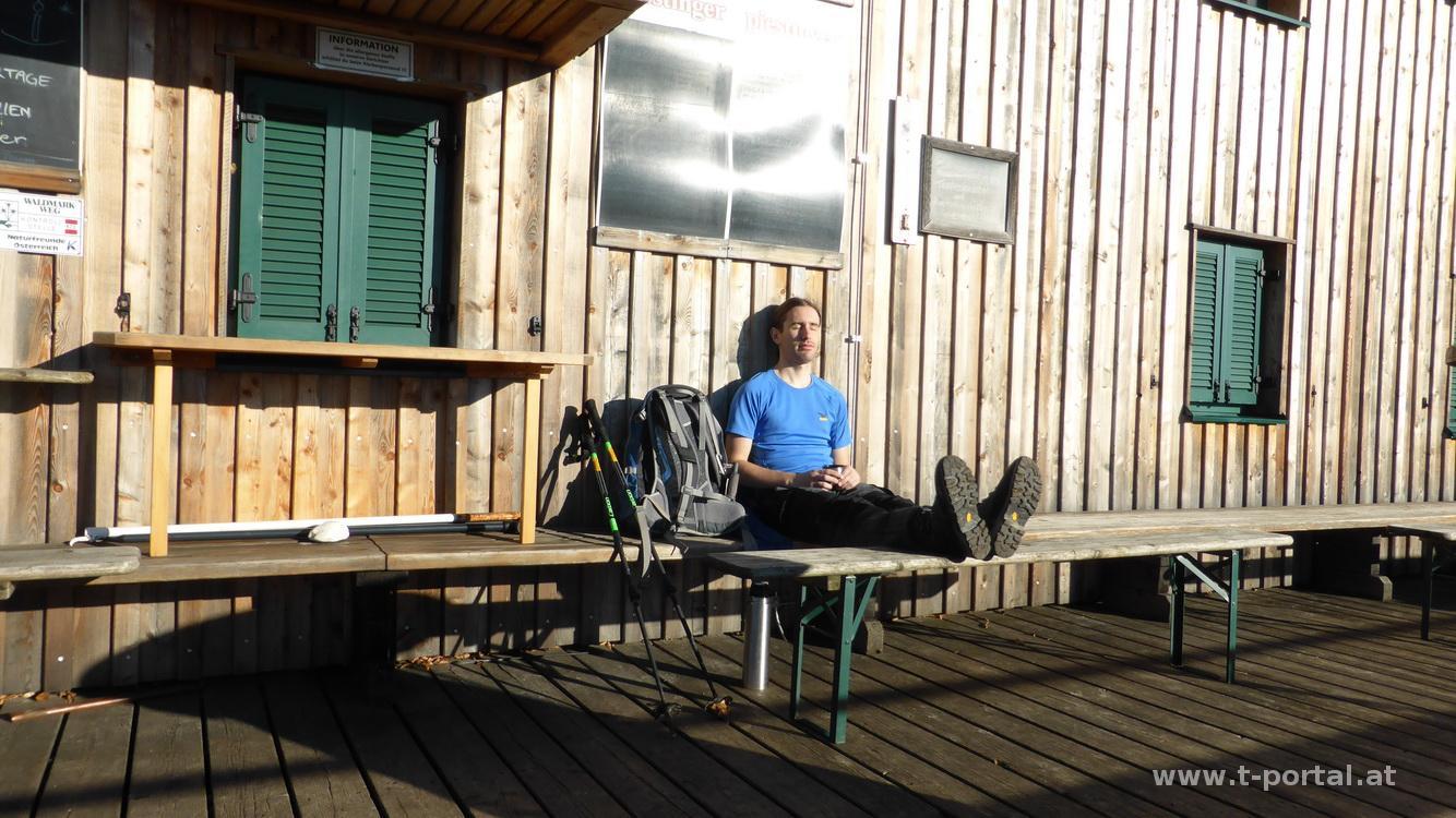 Nach Pause und Fotos geht es direkt hinab zum Schutzhaus, dass trotz Urlaubssperre heute schon wieder geöffnet ist und zumindest Getränke ausschenkt. Nachdem ich heute genug Zeit hab, bleibe ich auch hier in der Sonne sitzen, bevor ich mich auf den Rückweg mache. Nach einem kurzen Stück auf der Straße geht es nach rechts hinab, ein Stück über die Piste und dann gemütlich über Forststraßen, die ich in einigen Kehren direkt abkürze zum Parkplatz der Unterberglifte. Nach Studium der diesjährigen Liftpreise geht es entlang der Straße zurück zum Ausgangspunkt. Auch heute eine schöne Rund bei tollem Wetter.
