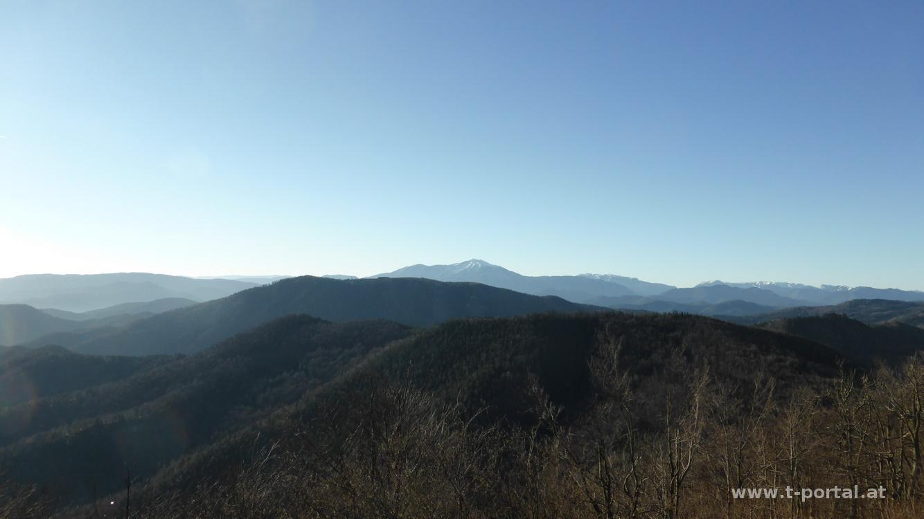 Schon länger habe ich diese Tour im Auge, heute ist es soweit. Ich parke mein Auto am Parkplatz nach Thal bei der Abzweigung ins Ramsental und wandere auch gleich auf der Forststraße gemütlich bergauf, während hinter mir die Sonne auf den Weg scheint. Ein Stück wird geradeaus auf einem schmaleren Weg abgekürzt, bevor es wieder nach links auf eine Forststraße, um eine Kehre und hinauf bis zum Bettelmannkreuz geht. Von dort geht es am Wanderweg weiter Richtung Kieneck. Hierzu zuerst ein Stück hinauf und auch wieder hinab, vorbei am Abzweiger zum Enziansteig und dem Viehgrabenweg. Die Enzianhütte ist bald im Blick, vorher erreiche ich nach kurzem Anstieg jedoch das Gipfelkreuz, das etwas unterhalb steht. Wenige Minuten später steh ich auf der Terasse der Enzianhütte, die bis nach Weihnachten geschlossen hat. In der Sonne lässt es sich windgeschützt selbst im T-Shirt sehr gut aushalten.