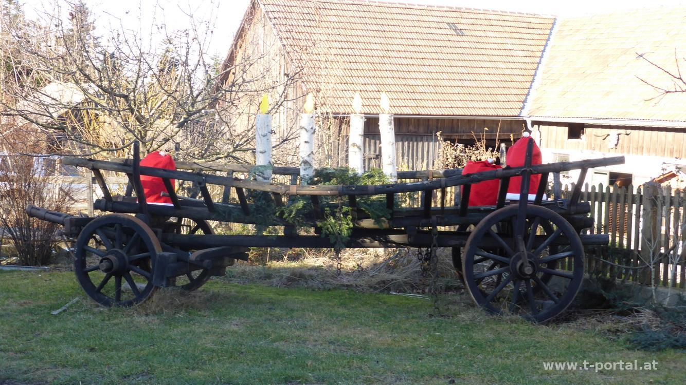Nach einem kurzen Stück auf der Forststraße geht es wieder in den Wald und etwas steiler hinab zu einer Wegkreuzung, hier direkt nach links runter bis zu einem Bauernhof und dann nach rechts, um auf der Straße hinab nach Stollberg zu gelangen. Kurz geht es durchs Dorf und dann auf einem gemütlichen Wald und Wiesenweg dahin. Beim roten Kreuz biege ich nach links Richtung Luft/Eck ab und erreiche nach etwas Abstieg die Häuser in Burhof. Es folgt ein langer Asphaltstraßenweg (den ich früher öfter und flotter mit dem MTB erledigt habe), bevor es durch die Häuser in Eck und entlang von Traktorspuren hinab nach Laaben geht.