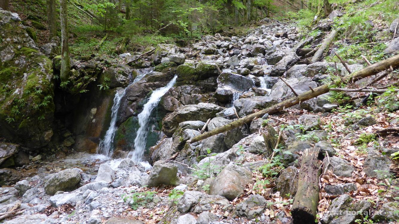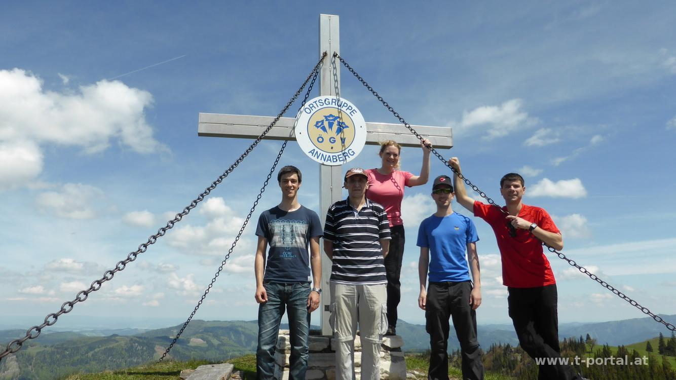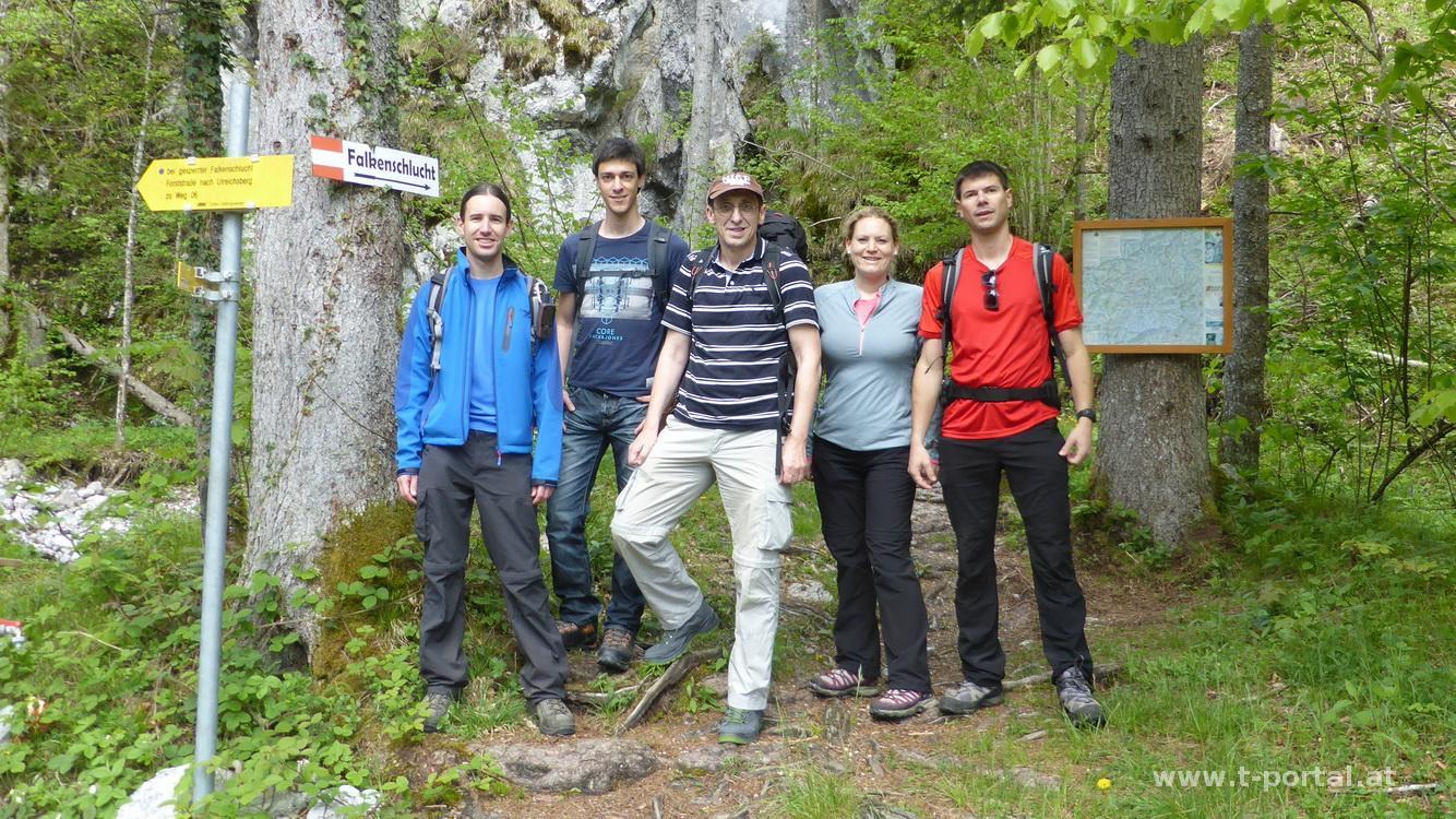 An diesem wunderbaren Samstag geht es mit meinen Kollegen Christian, Thomas + Freudin Lisi und Günter auf den Tirolerkogel. Wir starten unsere Tour beim Parkplatz Eisernes Tor, nachdem wir die Umfahrung durch Türnitz gefunden haben. Entlang des Retzbaches geht es auf der Forststraße gemütlich dahin, bis wir den Einstieg in die Falkenschlucht erreichen. Durch die schöne Schlucht geht es bei angenehmen Temperaturen entlang von Wasser, Fels und Wald aufwärts. Ein paar mal queren wir den Wasserlauf, folgen dem Pfad über die Holzstege und sind von der Länge der Schlucht beeindruckt.