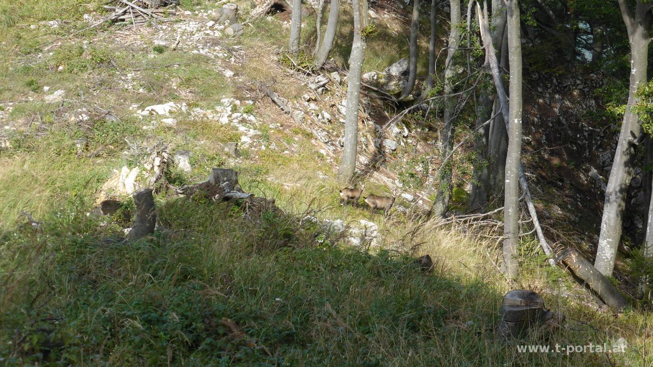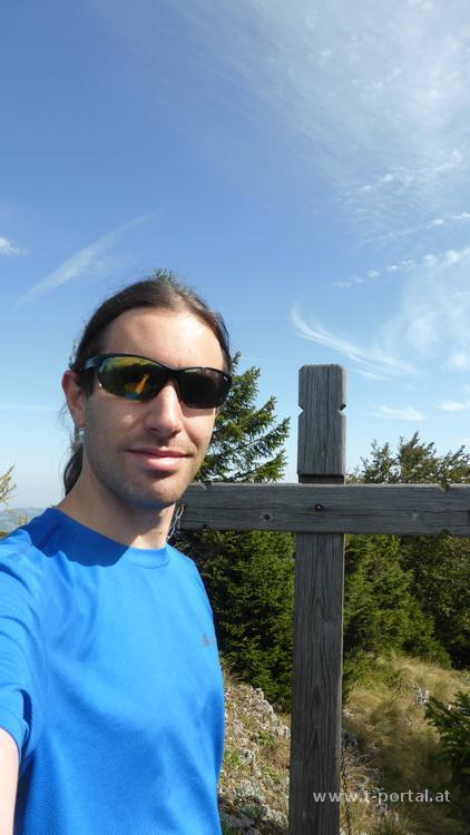 Nach längerer Pause wieder mal eine kurze Tour. Eigentlich müsst ich um die Zeit auf ganz anderen Routen unterwegs sein - aber in Puchenstuben war ich eh noch nie, darum gibt's hier heute eine unmarkierte Runde. Start ist im Zentrum von Puchenstuben. Ein Stück durch den Ort, dann gleich bergauf, einmal die Bundesstraße queren und auf einer Forststraße gemütlich dahin. Vorbei an Wiesen und Wäldern geht es bis zum Turmkogelsattel mit Gasthaus und Schilift, hier beginnt der eigentliche Weg. Dieser ist nicht ausgeschildert, hie und da gibt es aber doch Markierungen auf den Felsblöcken. Der Einstieg hinter dem Lift ist bald gefunden und so folge ich dem vorhandenen Pfad. Durch schönen Wald geht es meist auf, ein bissl ab und immer weiter dahin. Unterwegs gibt es schönen Ötscherblick, ein paar Gämsen und irgendwann erreiche ich das Gipfelkreuz am leicht bewaldeten Gipfel.