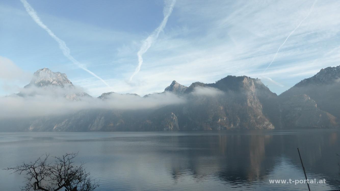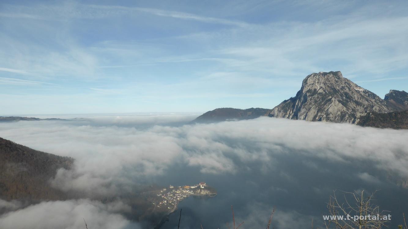 Da wir gerade in der Gegend sind und das Wetter auch noch schön ist, müssen wir schnell auf einen Berg mit Aussicht. Wir suchen uns den kleinen Sonnstein bei Traunkirchen aus. Vom Parkplatz an der Bundesstraße hat man schon tollen Blick auf See und Traunstein. Wir wandern gemütlich durch den Wald, passieren einige Kehren, bis wir nach links abbiegen und steiler und steiniger Richtung Sonnsteinhütte aufsteigen. Kurz hinab, vorbei an der Hütte und auf der anderen Seite wieder hinauf und schon stehen wir beim Gipfelkreuz und genießen die Aussicht zu Traunsee und -stein, Erlaakogel, Feuerkogel, usw.