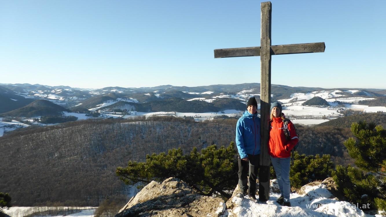 Wir machen noch einen Abstecher zum Gipfelkreuz, bevor wir im Peilsteinhaus pausieren. Anschließend geht es über Holzschlag wieder retour zum Ausgangspunkt.