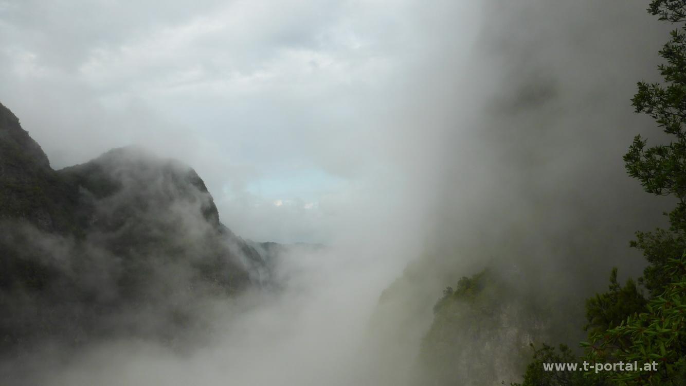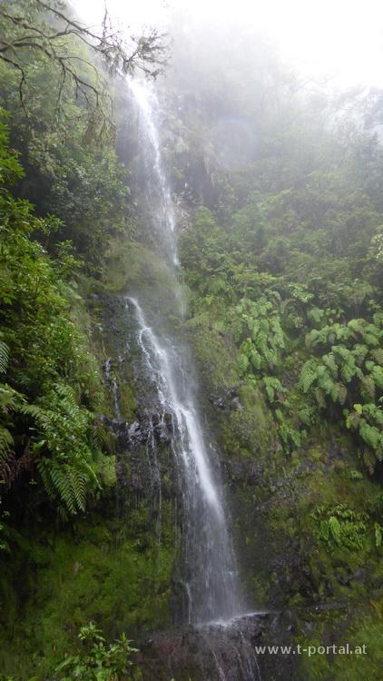 Als letzte Wandertour im Madeira Urlaub geht es auf eine der bekannteren Levada Runden. Wir finden gerade noch einen Parkplatz in Queimadas und marschieren dann entlang des Wasserkanals zum Caldeirão Verde. Am Wasser ist der Weg natürlich ziemlich flach und etwas feucht. Nachdem bereits Sonntag Nachmittag ist, kommen uns auch einige Wanderer entgegen und wir müssen uns auch an den schmalen Pfaden aneinander vorbei drängen. Das Wetter ist für die Woche auch typisch, viel Nebel und etwas Getröpfel während sich die Sonne nur hinter den Wolken erahnen lässt. Dafür entschädigen uns die zahlreichen Wasserfälle unterwegs, das viele Grün an den Bäumen und Felsen und die frische Luft.