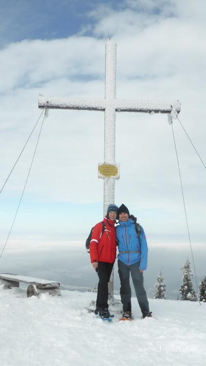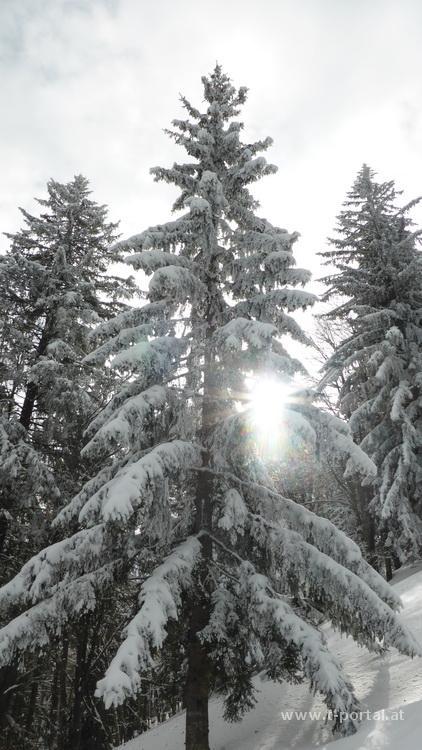 Weiter geht es zum Kreuz und anschließend zur Einkehr im geöffnenten Schutzhaus. Als wir nach leckerer Stärkung wieder raus kommen lacht uns die Sonne an. Am gleichen Weg geht es wieder retour, wobei wir die steileren Stücke gleich am Hosenboden hinter uns bringen. Durch das traumhafte Winterwunderland wandern wir zurück zum Ausgangspunkt.