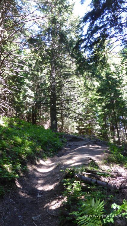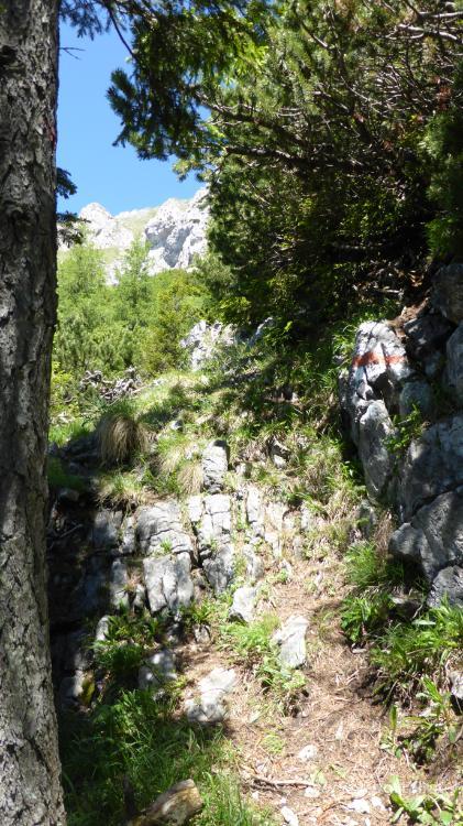 Das Habsburghaus lacht uns schon von weitem an, wenig später sitzen wir auch schon in der Sonne bei der nächsten Mahlzeit. Anschließend geht es bergauf weiter Richtung Rax-Gmoa-Hütte, wobei wir hier rechtzeitig vorher zum Bergrettungsschiff abbiegen. Von dort nehmen wir den Waxriegelsteig (der mir auch noch in der Sammlung gefehlt hat) zum Abstieg ins Tal. Mit schönem Blick zur sonnenbeleuchteten Preiner Wand geht es flott hinab. Kurz vor der nächsten Pause besteigen wir den Entenhügel und sind wenig später beim Waxriegelhaus angelangt. Von dort geht es auf der ehemaligen Schiwiese runter zum Preiner Gscheid.