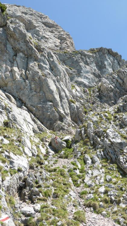 Heuer waren wir noch gar nicht auf der Rax, das soll sich heute ändern. Dieses Mal bauen wir ein paar Teilstücke ein, die wir noch nicht kennen. Start ist (wie so oft) am Preiner Gscheid. Von dort geht es kurz über die Wiese aufwärts, dann folgen wir dem Weg zur Reisstalerhütte auf der linken Seite. Durch schönen Wald geht es gemütlich aufwärts, während neben uns die Blumen blühen und uns die Sonne auf den Kopf scheint. So erreichen wir die Reisstalerhütte (unbewirtschaftet), wo wir eine kurze Pause einlegen. Kurz nach der Hütte geht es nach rechts in den Wald und den Pfad folgend aufwärts. Weiter oben teilt sich der Weg zum Fuchsloch- und Reisstalersteig. Für uns geht es gerade weiter, durch einiges an Gestrüpp, bis wir der Wand näher kommen. Wir queren ein Schotterfeld und stehen bald beim Einstieg zum großen Fuchsloch.