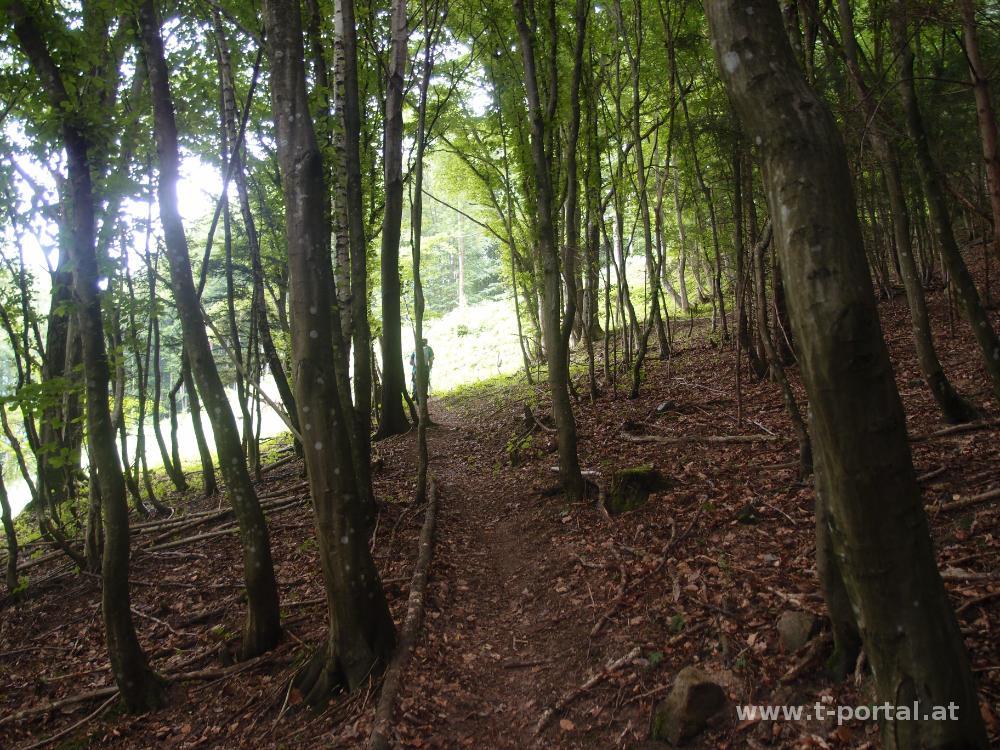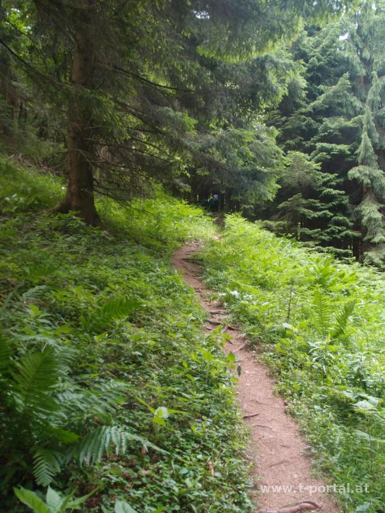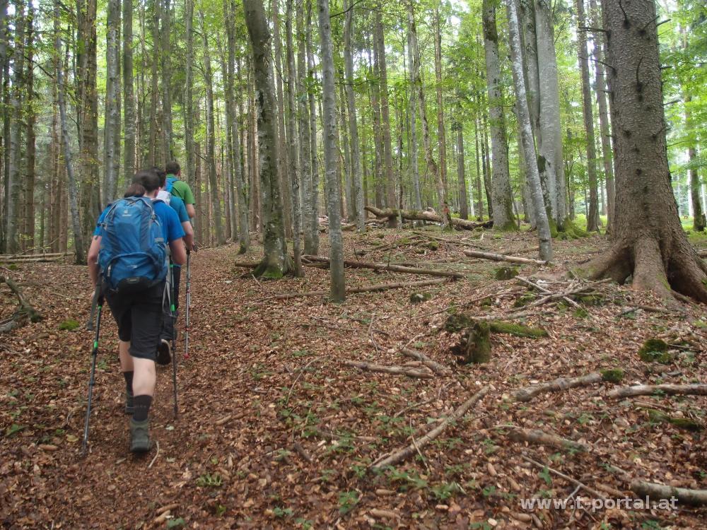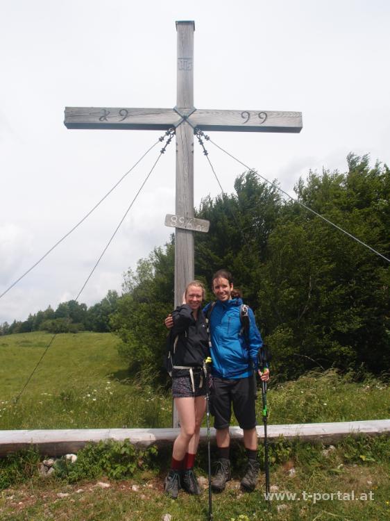 Hier posieren wir zuerst Mal fürs Gipfelfoto und stärken uns dann mit leckeren Riesenknödeln. Anschließend geht es wieder zurück zum Engleitensattel und gleich nach links hinab durch den Wald. So geht es ein gutes Stück runter, bis wir durchs Zögersbachtal zuerst auf der Forst- und später auf der Asphaltstraße zurück zum Ausgangspunkt gelangen.
