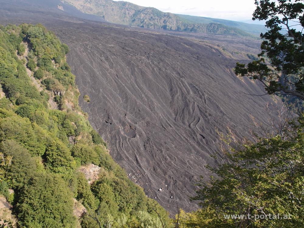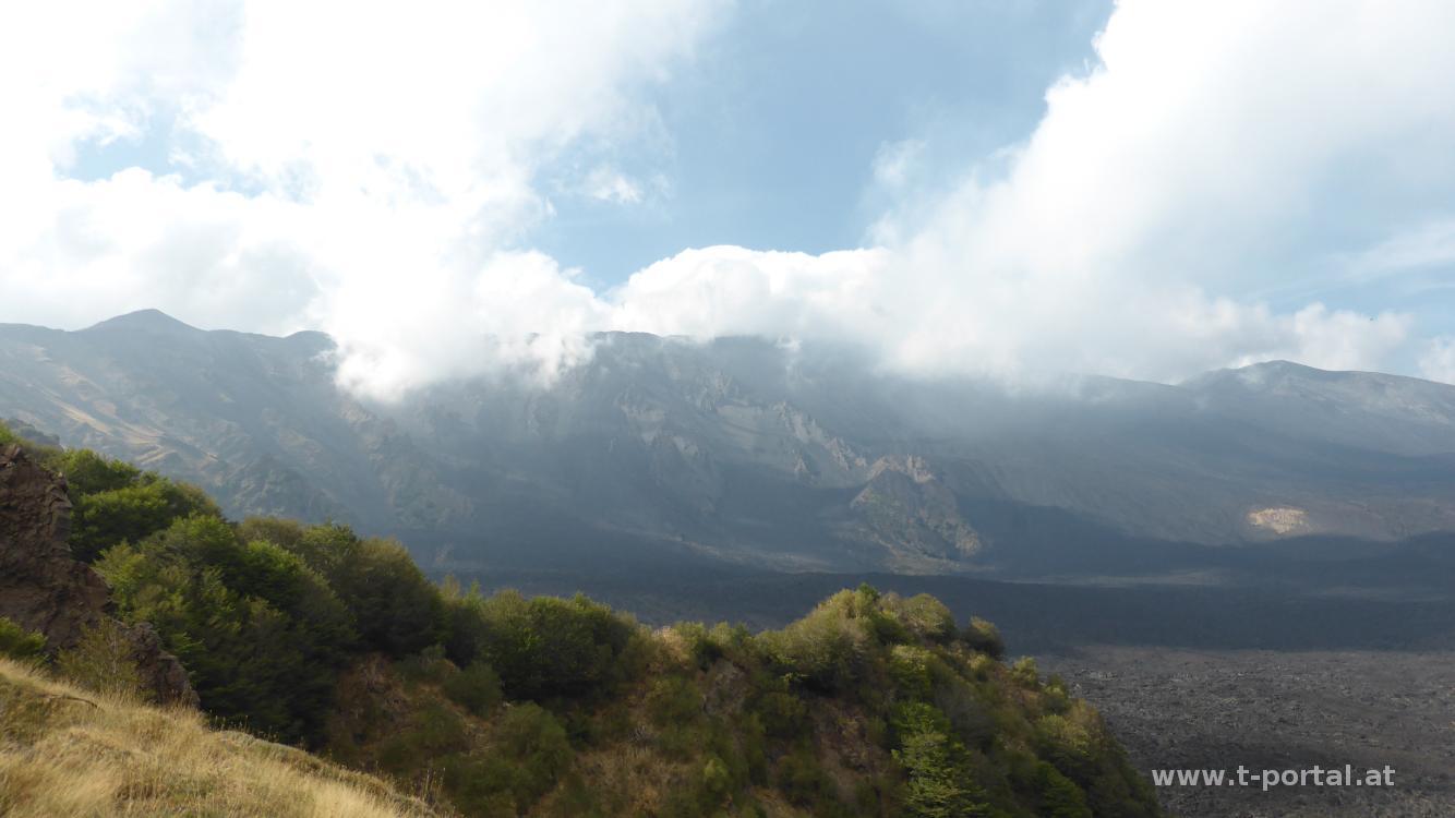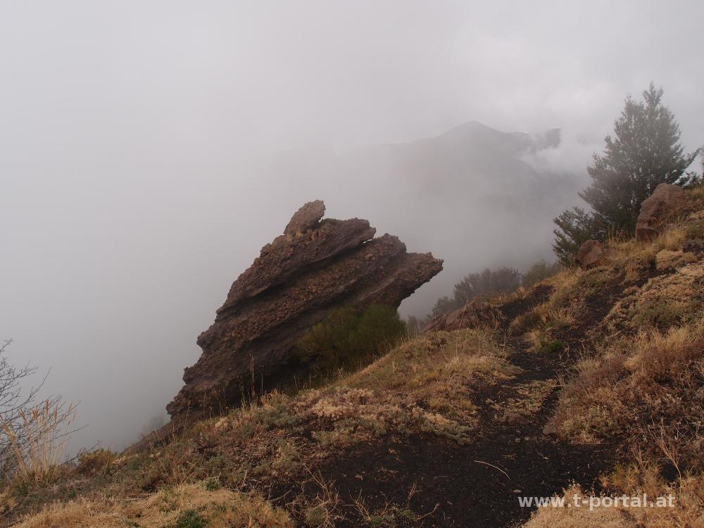 Wir verbringen unseren Herbsturlaub in Sizilien und machen auch ein paar Wanderungen. Die erste führt uns ins Etna Gebiet - genauer gesagt über und ins Valle del Bove. Dieses Lavameer hat sich im Laufe viele Jahre gebildet aber selbst heute kommt hier alle paar Jahre frische Lava dazu. Unsere Tour startet am Parkplatz am Ende der Straße zum Refugio Zoccolaro. Von dort gehen wir zuerst die paar Stufen hinauf zum ersten Aussichtsplatz, wo sich bereits der Blick auf das beeindruckende Tal lohnt. Für uns geht es nun im Wald aufwärts. Der Weg ist zwischenzeitlich eine ziemliche Rinne und etwas verwuchert. Viel Gras, bunte Büsche und stammige Bäume säumen Weg. So ist unser erstes Ziel, der Monte Zoccolaro bald erreicht.
