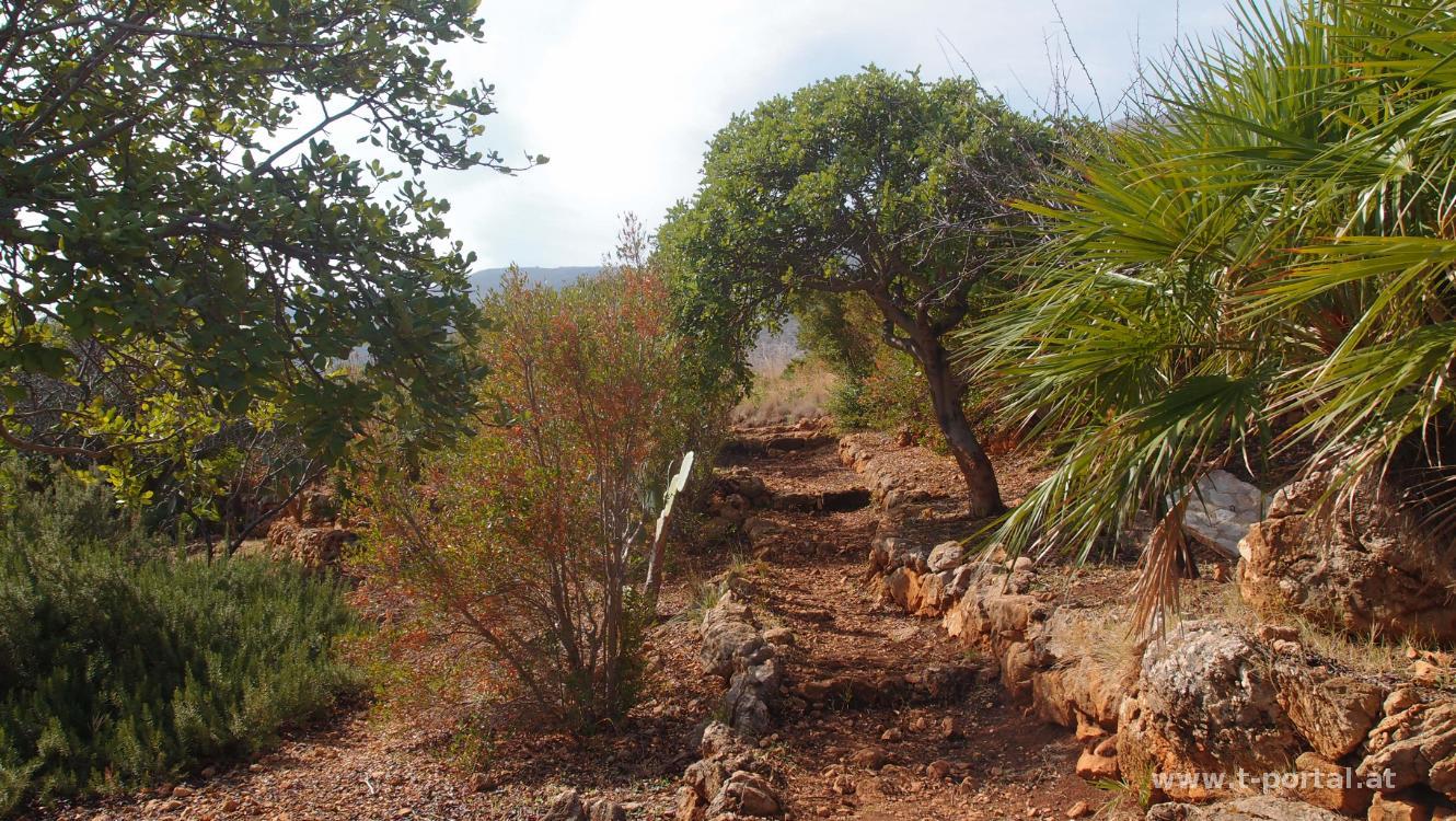 Route: Zingaro Nationalpark Eingang Nord bei San Vito Lo Capo - Grotta dell'Uzzo - Sughero - Pizzo del Corvo (418m) - Centro Visitatori - Cala dell'Disa - Cala dell'Uzzo - Eingang