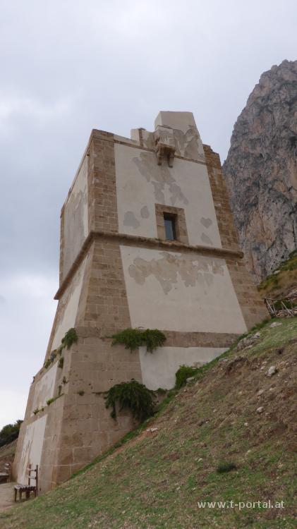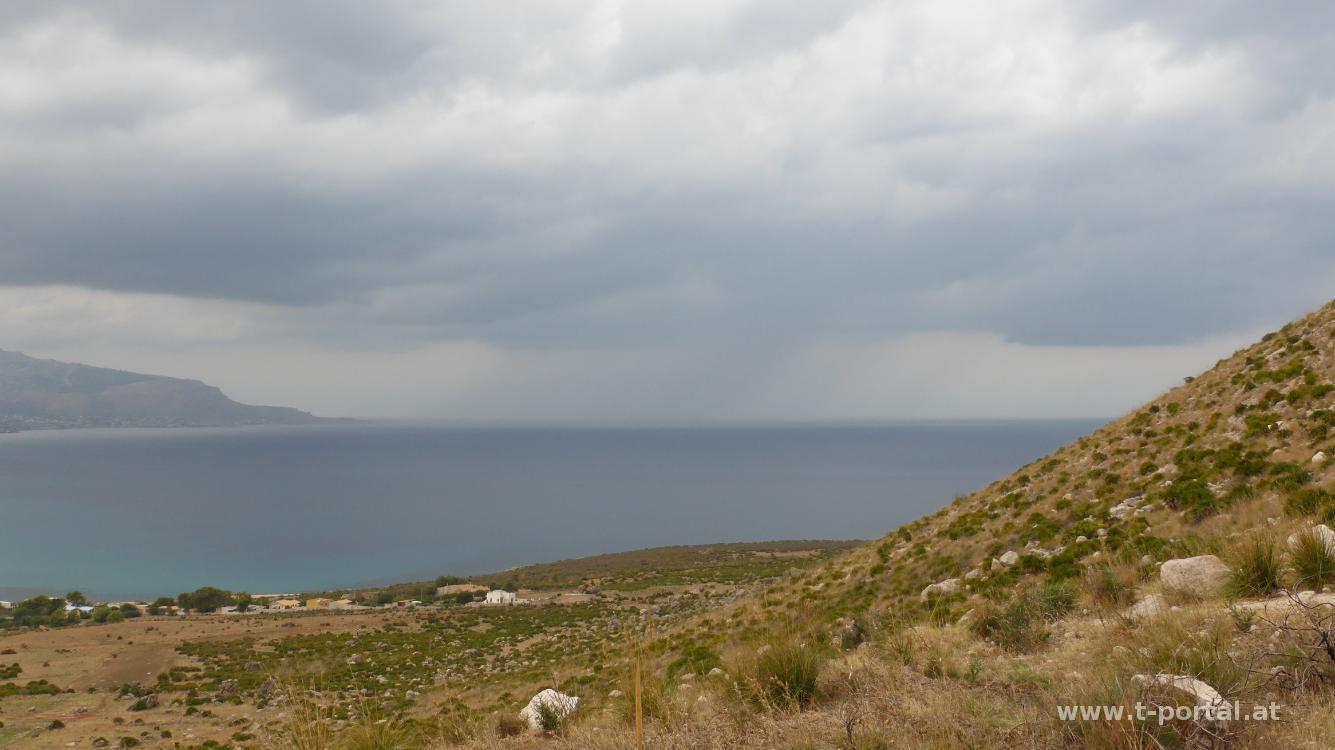 Anschließend ein Stück hinunter zur Cappella Crocifisso und an der Küste weiter Richtung Osten. Es beginnt nochmal etwas zu regnen, viel ist es aber nicht mehr. Der Weg führt uns durch die Küstenlandschaft zum Torre della tonnara di Cofano und anschließend auf der Straße zurück zum Ausgangspunkt. Schade, dass der Gipfelsieg nicht geklappt hat. Wir waren auch etwas überrascht, dass die Touristeninfo kein Wort Englisch spricht.