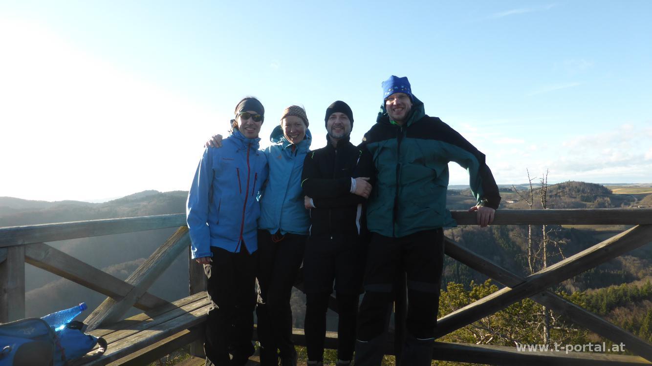 Auf der Warte bläst ganz gut der Wind und nach kurzer Rast und Fotopause machen wir uns auf den Rückweg. Die abgestürzte Drohne hat der Pilot inzwischen eingesammelt oder jemand mitgenommen. Am gleichen Weg kehren wir mit den letzten Sonnenstrahlen nach St. Michael zurück und machen uns auf den Weg zur Silvesterfeier.