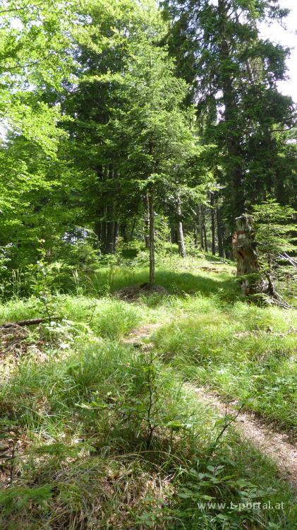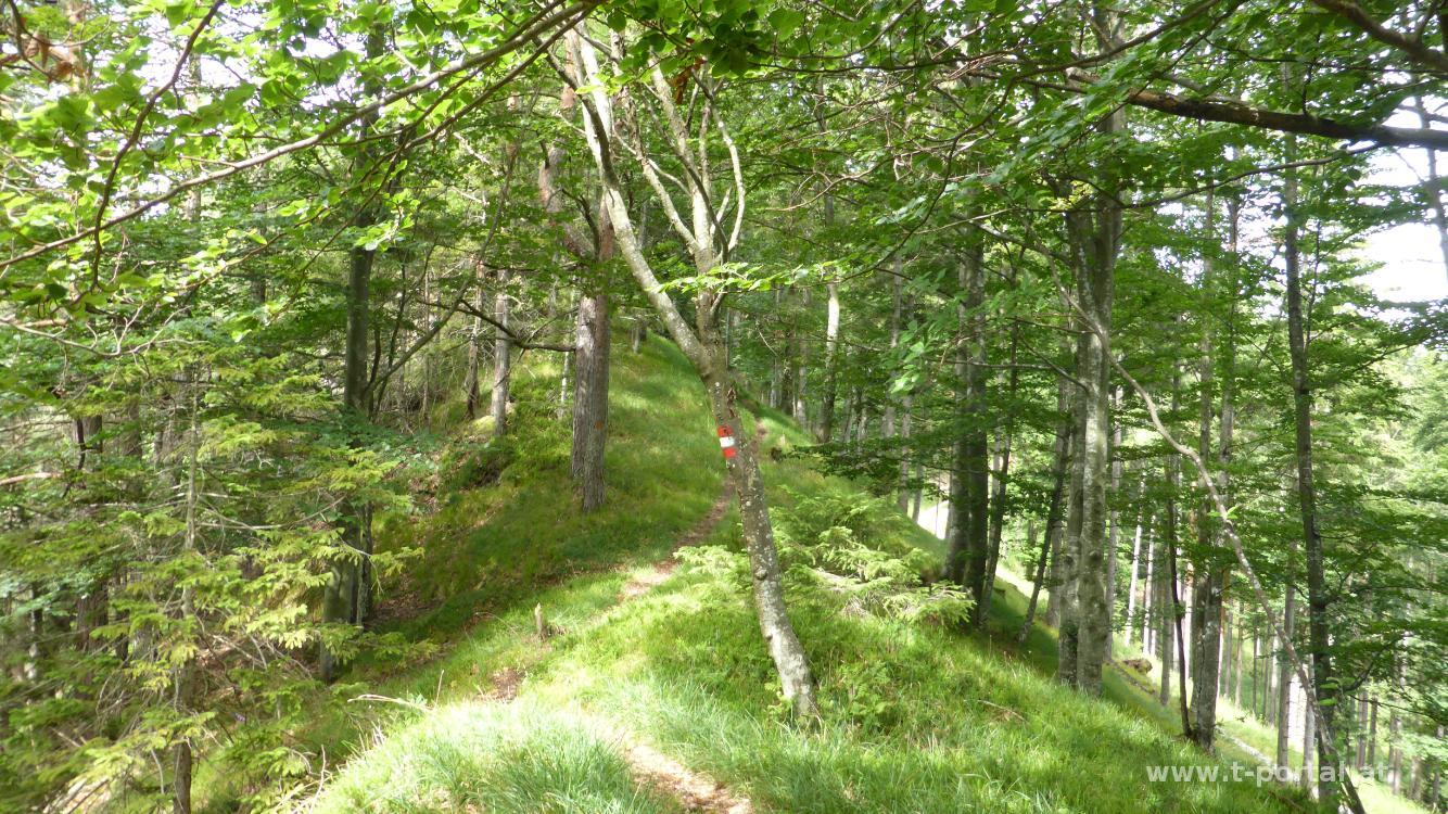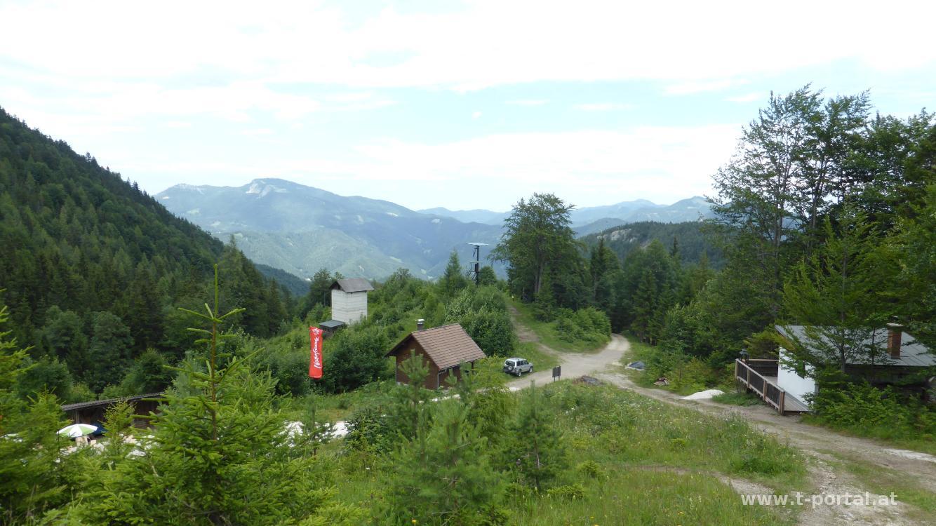 Eigentlich wollten wir heute auf den Ötscher (mal schauen, wie oft ich das noch schreibe). Nachdem es bei der Anreise aber schon etwas regnet, biegen wir in St. Pölten ab und nehmen einen Gipfel, bei dem Regen nicht so tragisch wäre. Ein Ö soll er auch haben und somit ist das Ziel schnell ausgesucht: der Türnitzer Höger. Wir nehmen den Anstieg von der Hohenberger Kiche und gehen über den Stadelbergkamm aufwärts. Durch den Regen unter der Woche ist alles extra grün. Weiter oben geht es ein Stück auf der Straße und dann durch Wald bis zum Sattel zwischen Höger und Stadelberg. Ein Stück bergab über die Wiese treffen wir das Türnitzer Hütten Auto und machen uns an den Anstieg zum Gipfel.
