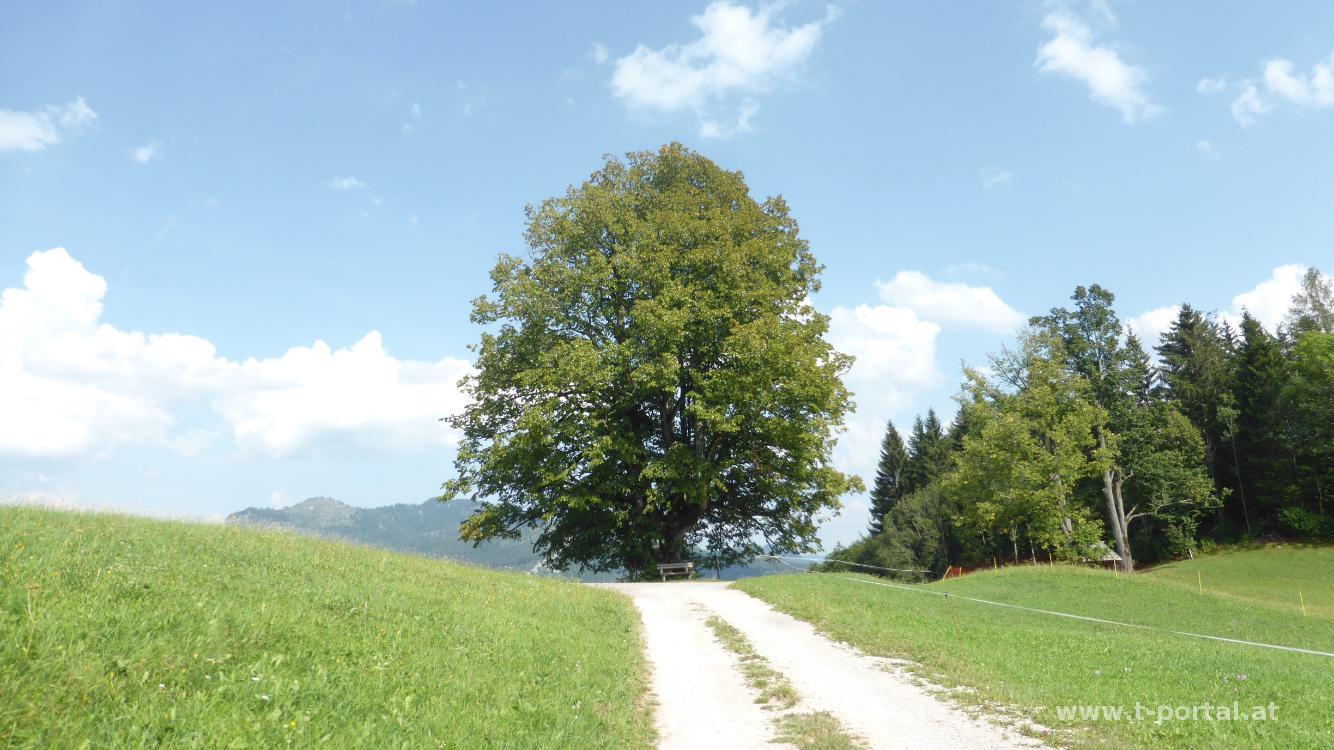 Hier stärken wir uns, rasten etwas in der Sonne und machen uns dann auf den Rückweg. Bei der ersten Kreuzung gehen wir leicht nach rechts und wandern durch Wiese und Wald zur Obersbergalm. Über die Wiese geht es zum nächsten Wegweiser und nach rechts im hohen Gras weiter. Der Abstieg führt uns auf die Forststraße, welcher wir bis zur nächsten Kreuzung folgen, nach links abbiegen und wenig später nach rechts wieder auf den Waldweg abbiegen. Flott geht es hinab nochmal über die Forststraße oder auch entlang von dieser bis wir zum Obersberger Bauern absteigen. Dieser hat den Wanderweg, der an seinem Stadel vorbeiführt, gut mit Elektrozaun gesichert. Elektrisiert verlassen wir den Hof und marschieren gerade aus zur Obersberger Linde. Dort pausieren wir nochmal, bevor wir auf der Straße hinab zum nächsten Bauernhof spazieren. Nochmal geht es in den Wald, etwas steiler und rutschiger hinab zur nächsten Straße, die uns zu den ersten Häusern von Schwarzau führt. Durch den Ort geht es nun retour zum Ausgangspunkt. Klaus hat zwar zwischendurch festgestellt, dass er hier doch schon war, schön war's trotzdem :-)