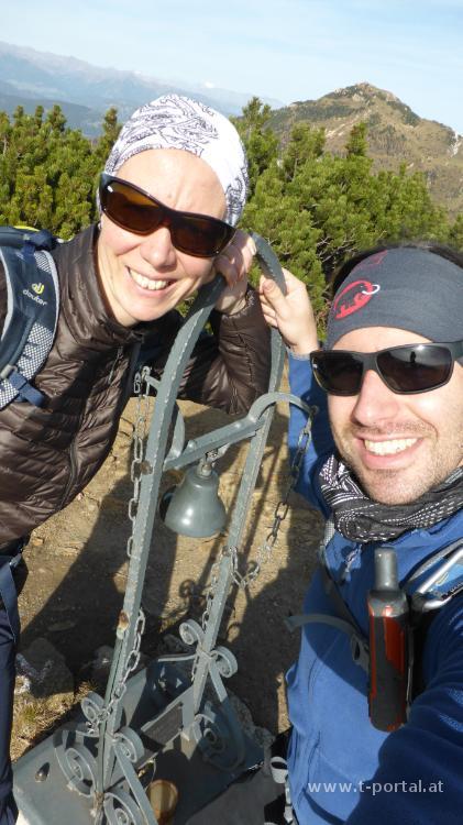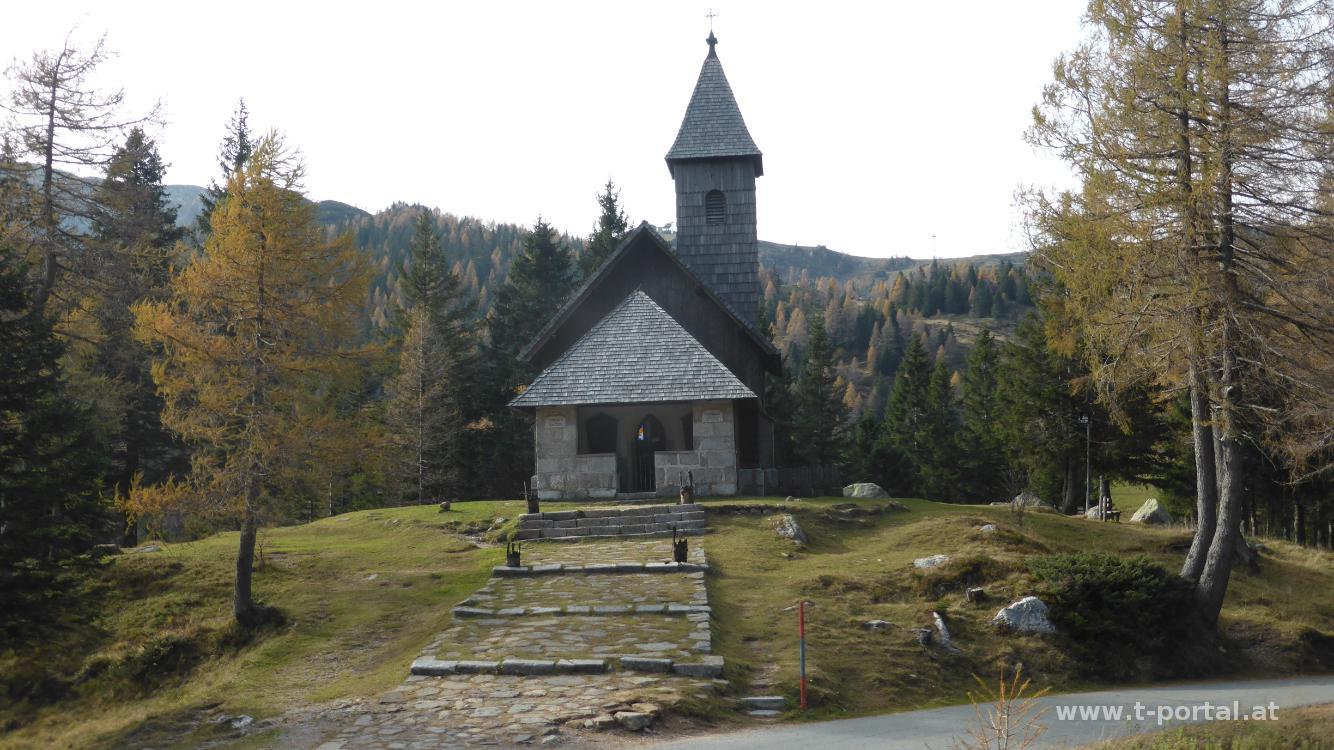 Nach kurzer Rast geht es zuerst am gleichen Weg hinab und dann nach links zurück zur Kapelle. Von dieser biegen wir nach Süden ab und machen noch einen kurzen Abstecher nach Italien, bevor es entlang des Lago Del Pramollo auf der Straße zurück zum Parkplatz geht. Eine nette kleine Runde bei wunderbarem Herbstwetter.