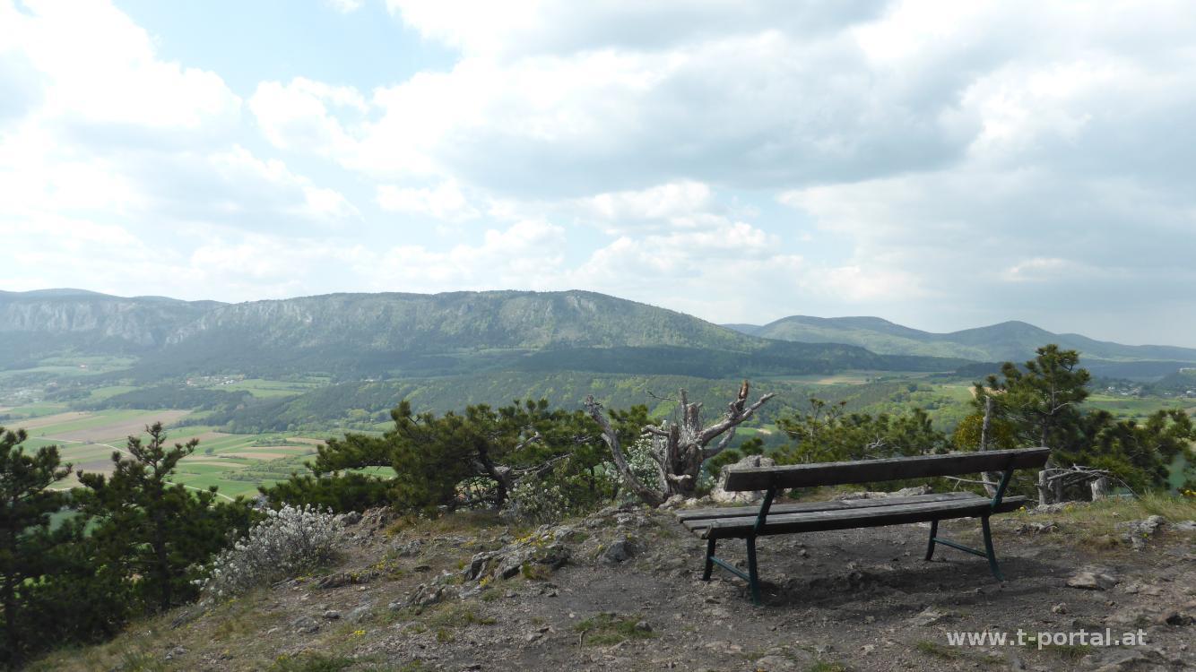 Nach etwas windiger Rast geht es hinab zum Kreuz und weiter zum Marmorsteinbruch. Von dort steil hinab und weiter bis zum Abzweiger zum Aussichtsplatz oberhalb des Winzendorfer Steinbruchs. Nachdem wir auch von hier auf die Gegend hinabgeschaut haben, geht es wieder hinab ins Dorf und zurück nach Hause.
