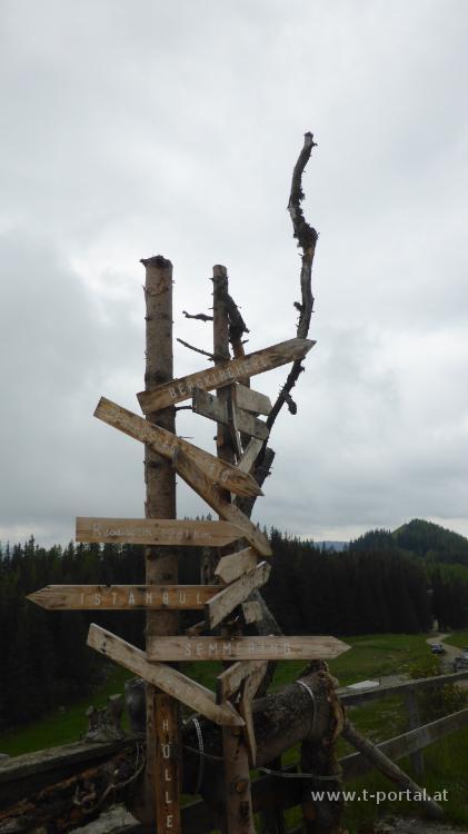 Heute soll angeblich noch der etwas schönere Tag am Wochenende werden, darum haben wir uns eine Runde am Semmering ausgesucht. Klaudia, Stefan und ich starten von Maria Schutz auf den Sonnwendstein. Wir folgen dem Gebirgsjägersteig in vielen Kehren aufwärts, queren ein paar Straßen und erreichen den Abzweiger zur Pollereshütte und wenig später auch den Sonnwendstein. Am "Blickplatz" sieht man bei dem Wetter nur die Berge in de näheren Umgebung, wobei sich die Gipfel teilweise auch in Wolken hüllen.