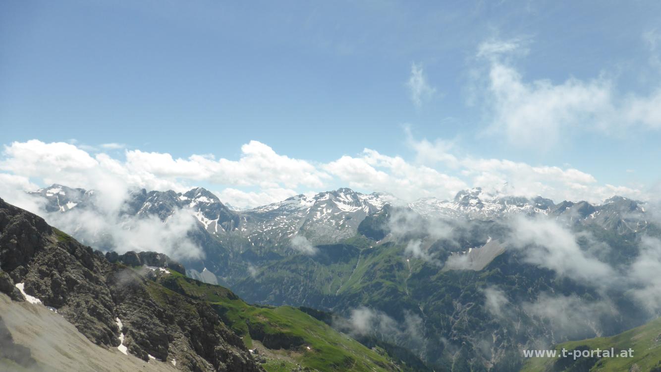 Der Aufstieg in der Sonne ist schweißtreibend, aber nach einiger Schnauferei erreichen wir doch das Joch und legen eine kurze Jausenpause ein. Wir entschließen uns noch den Ruchenwannekopf zu besteigen. Wir folgen dem Pfad noch ein Stück und steigen dann weglos nach Osten über die Blumenwiesen hinauf zum Gipfel. Hier rasten wir länger und genießen den Ausblick zu den Bergen der Umgebung.