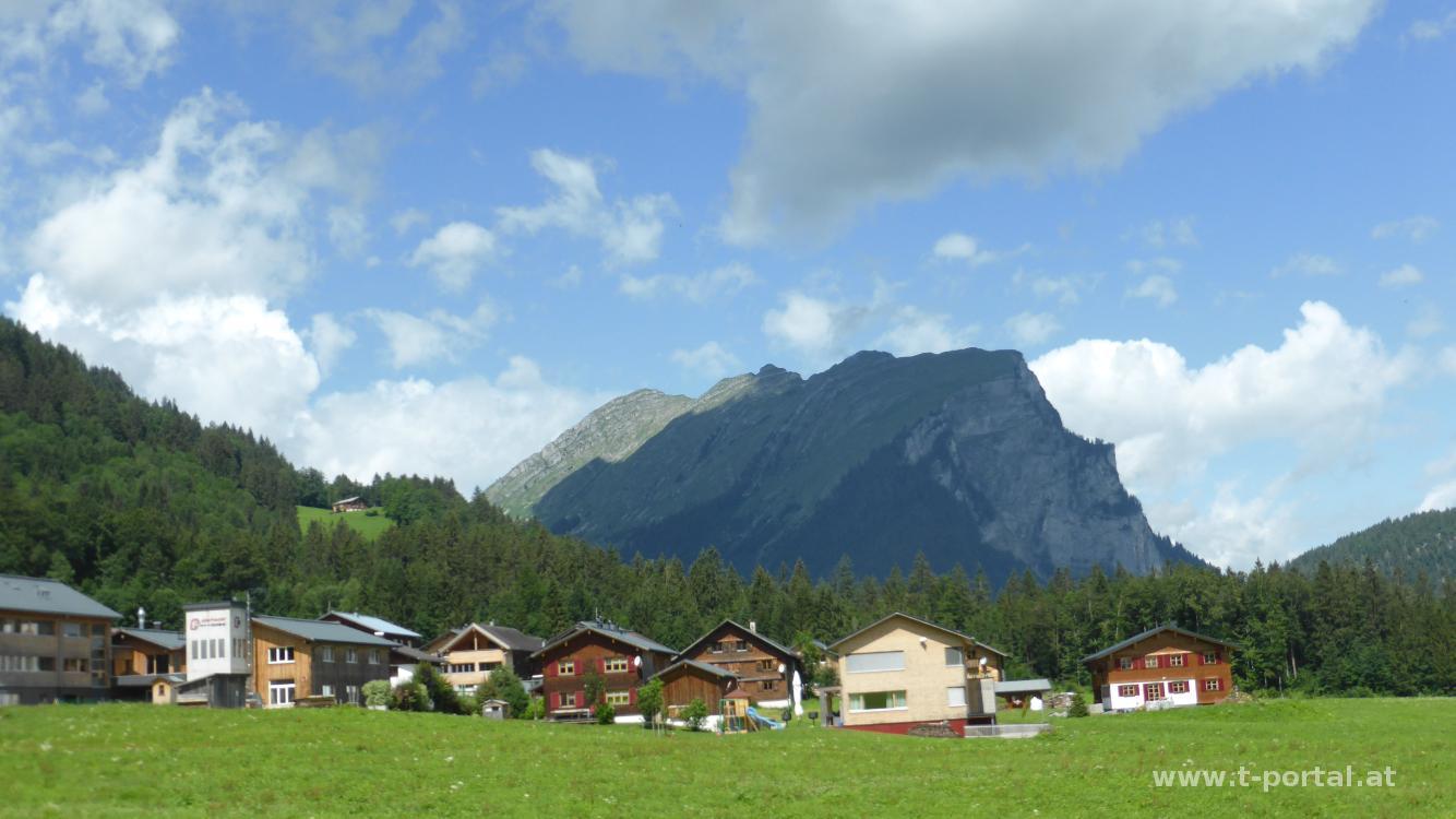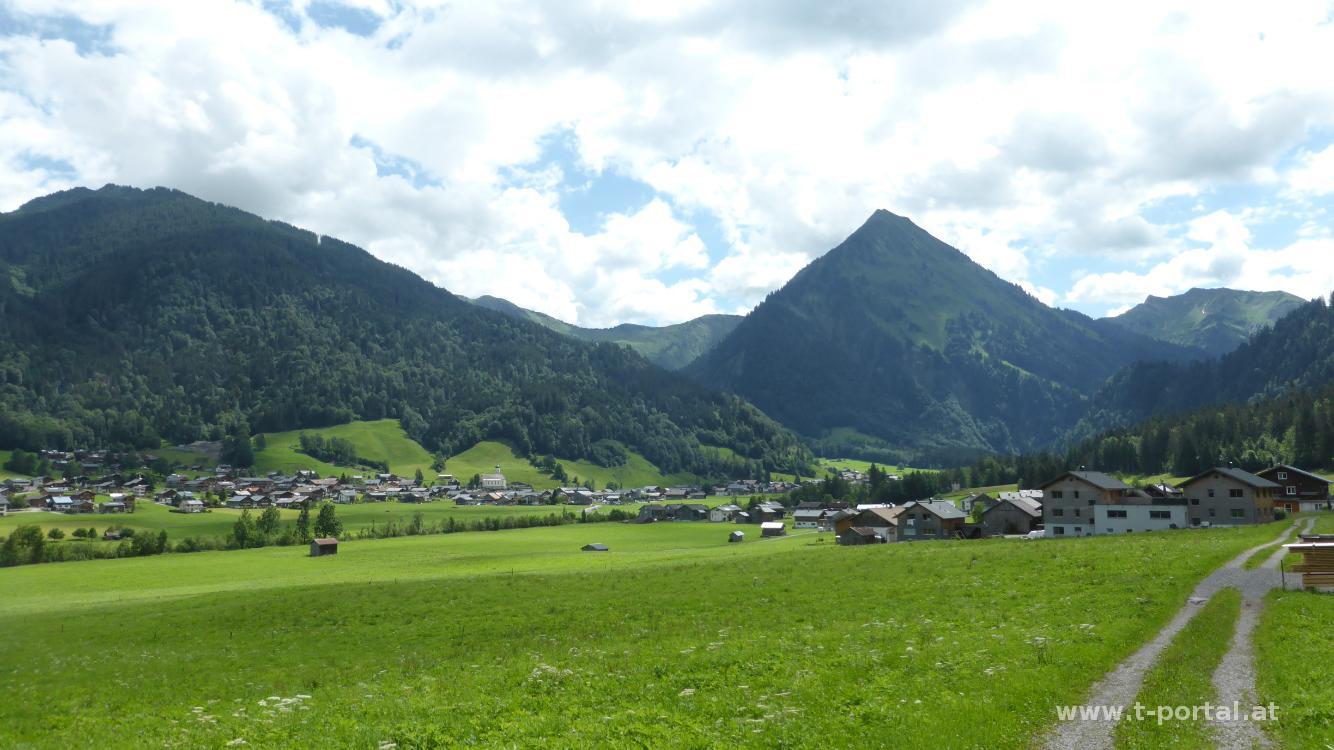 Auf einem Waldweg geht es nun hinab, teilweise noch etwas feucht durch den Regen. Wir erreichen wieder einen breiteren Pfad und schauen wenig später nach Schoppernau. Durch die Gräsalp Siedlung geht es nun ins Dorf zum Einkaufen und Essen.