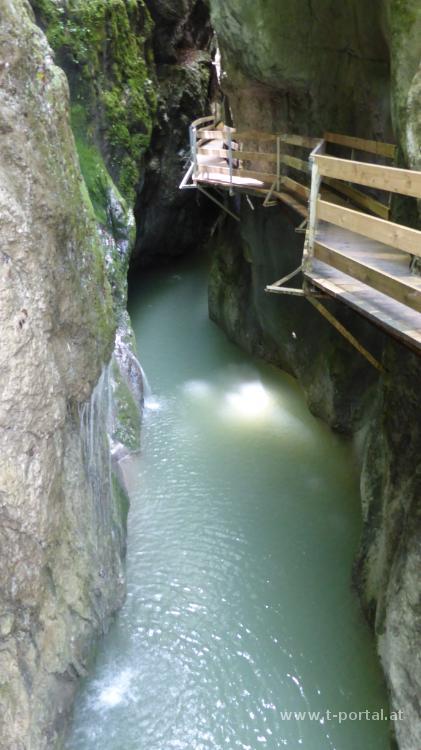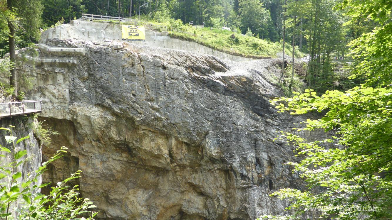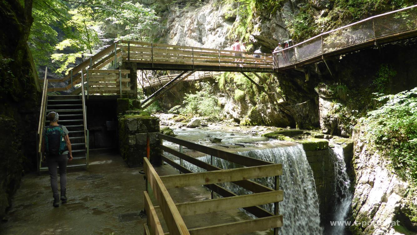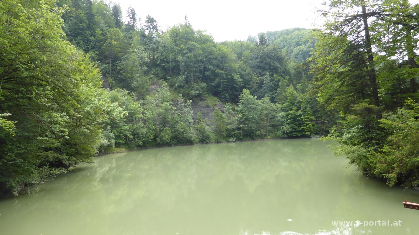 Vor der Heimreise touren wir noch etwas durch Vorarlberg und besuchen die Rappenlochschlucht. Obwohl die Parkplätze gut gefüllt sind, ist in der Schlucht gar nicht so überlaufen. Vom Parkplatz geht es zum Rappenlochstadl und anschließend in die Klamm. Durch größere Felsstürze wurde der Weg vor einigen Jahren zerstört. Der neue Weg führt nun über anstelle durch die Schlucht und dies über zahlreiche Betontreppen. Das macht das Klammerlebnis natürlich nicht mehr so spannend. Nach dem ersten Teil landen wir am Stausee (Staufensee) und umrunden diesen bis zum Kraftwerk. Der ehemalige Wanderweg ist inzwischen die Umfahrungsstraße für die nicht mehr vorhandene Brücke über die Klamm.