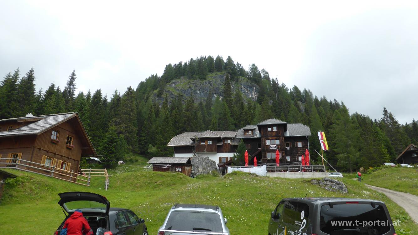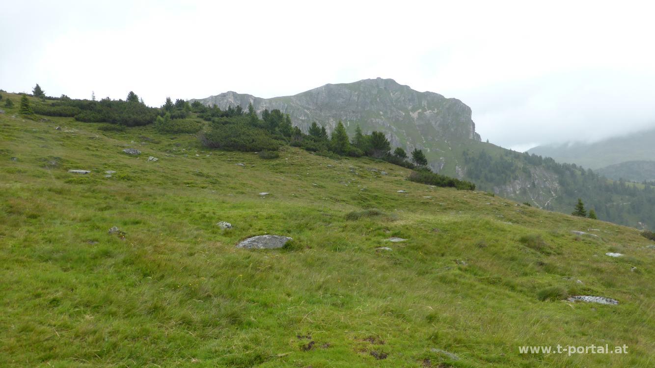 Der höchste der Nockberge stand für diese Woche auch auf der Liste. Heute war die letzte Möglichkeit und das Wetter sollte zumindest ein paar Stunden aushalten. Wir fahren auf der Forststraße zum Erlacherhaus und starten unsere Tour. Bereits beim Einparken beginnt es zu regnen. Wir gehen trotzdem los und folgen der Forststraße aufwärts und ein paar mal ums Eck. Bei der Feldhütte geht es dann auf die Wiese und weiter aufwärts. Es regent konstant dahin, zwar kein Schütten aber auch lange kein Nieseln mehr. Wir gehen noch bis ca. 1950m Höhe, wo uns der Wind den Regen immer mehr ins Gesicht bläst.
