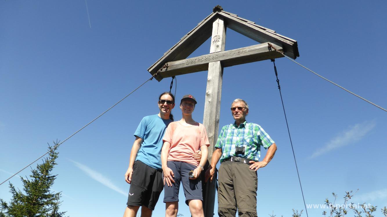 Am Obersberg war ich ja schon oft, mein Vater aber noch nicht. Das wollen wir heute ändern. Wir starten in Schwarzau im Gebirge, gehen rauf zur Kirche und von dort nach rechts auf den Wanderweg über die Wiese. Im Wald wächst im Sommer ziemlich viel Zeug, das wir durchwandern. Mal geht's nach links, mal nach rechts aber zumeist aufwärts. Die umgestürtzten Bäume aus dem letzten Jahr sind verschwunden und wir sind durchgänig am markierten Weg unterwegs. Wir erreichen zum ersten Mal eine Forststraße, folgen dieser und gehen bald wieder am Wanderweg weiter. Es folgen zwei Hangquerungen, mehr Wald, Forstraßenquerungen und noch mehr Wald.