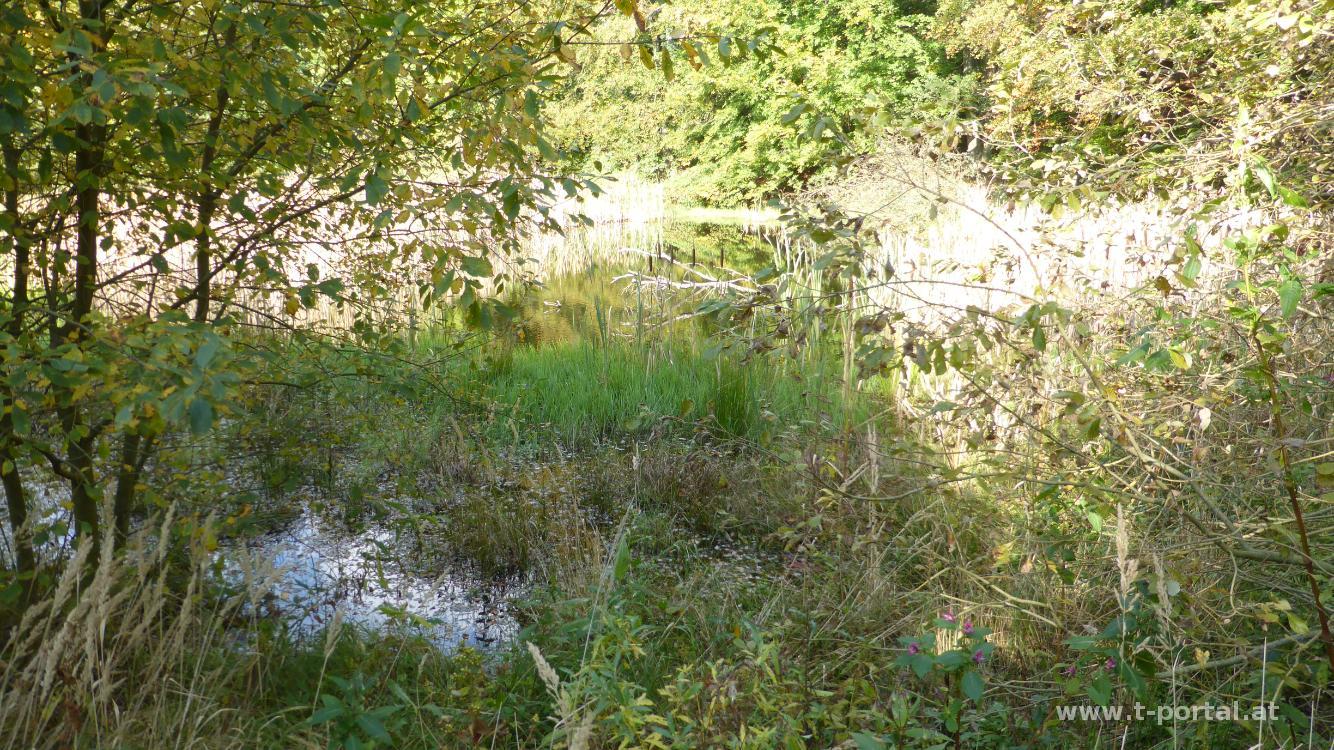 Wir gehen noch etwas weiter und suchen uns einen Rastplatz. Anschließend geht es hinab und nach rechts, wo wir noch den Rührsdorfer See besuchen. Nach erneuter Pause geht es auf der Forststraße wieder zurück, bis wir den Abzweiger nach St. Lorenz erreichen. Hier wandern wir nach links in den Graben hinab und diesen entlang zurück ins Dorf. Neben den Weingärten geht es zurück zum Ausgangspunkt. Das Wetter ist noch immer schön, da hätten wir noch länger schlafen können.