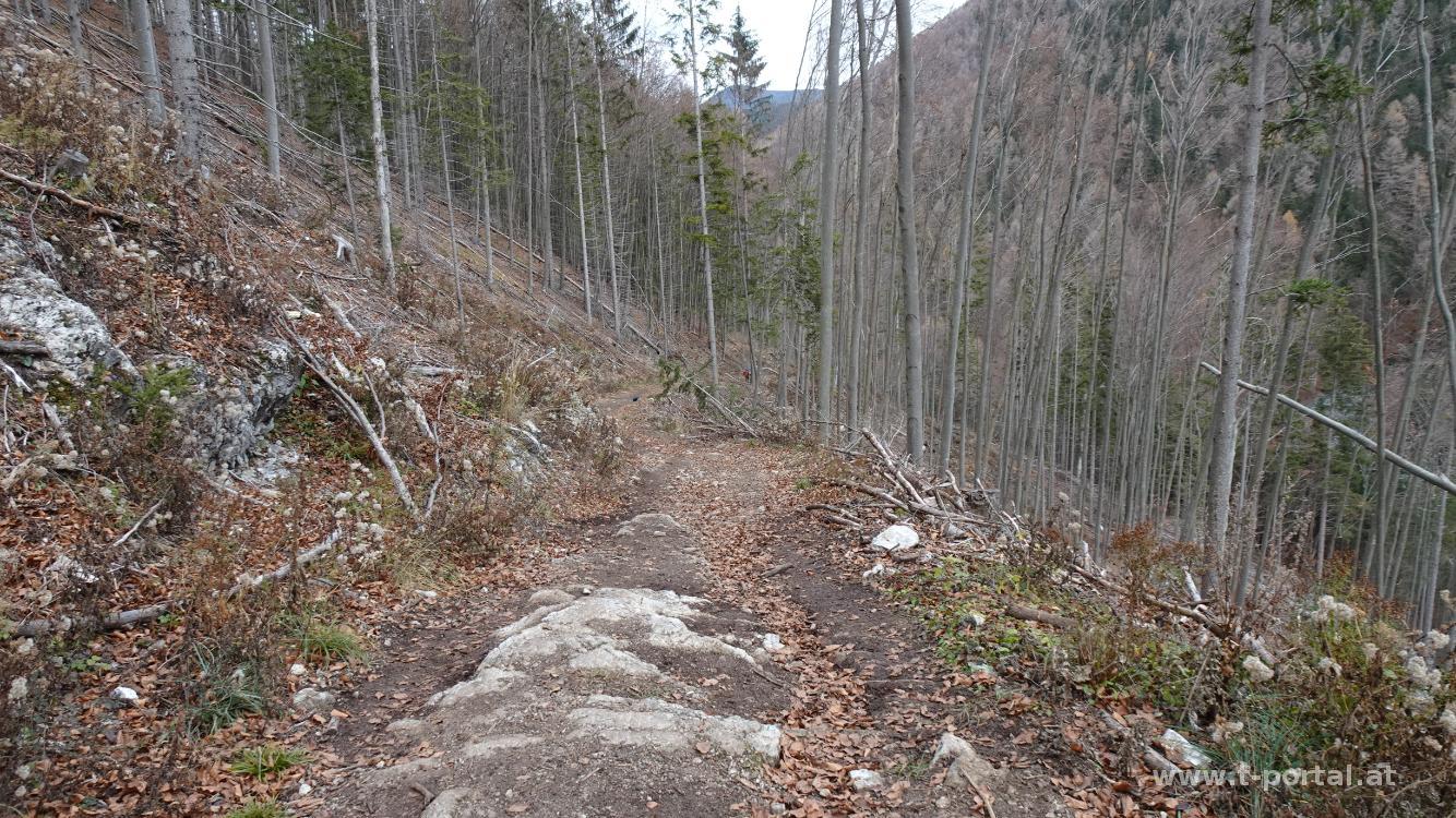Der Wetterbericht meinte, dass es auf den Bergen schön sein könnte. Als versuchen wir unser Glück am Unterberg. Vom Parkplatz wandern wir zuerst auf der Forststraße, kürzen ein Stück auf schmalerem Pfad ab und folgen dann dem Wanderpfad aufwärts. Nachdem von der Sonne nicht viel zu sehen und es im Tal entsprechend frisch ist, versuchen wir uns von innen aufzuwärmen und schlagen ein flotteres Tempo an. Wir queren ein paar Mal die Forststraße und folgen dieser später, bis wir rauf zum Bettelmannkreuz kommen. Wir wenden uns nach links und gehen weiter zum Unterberg.