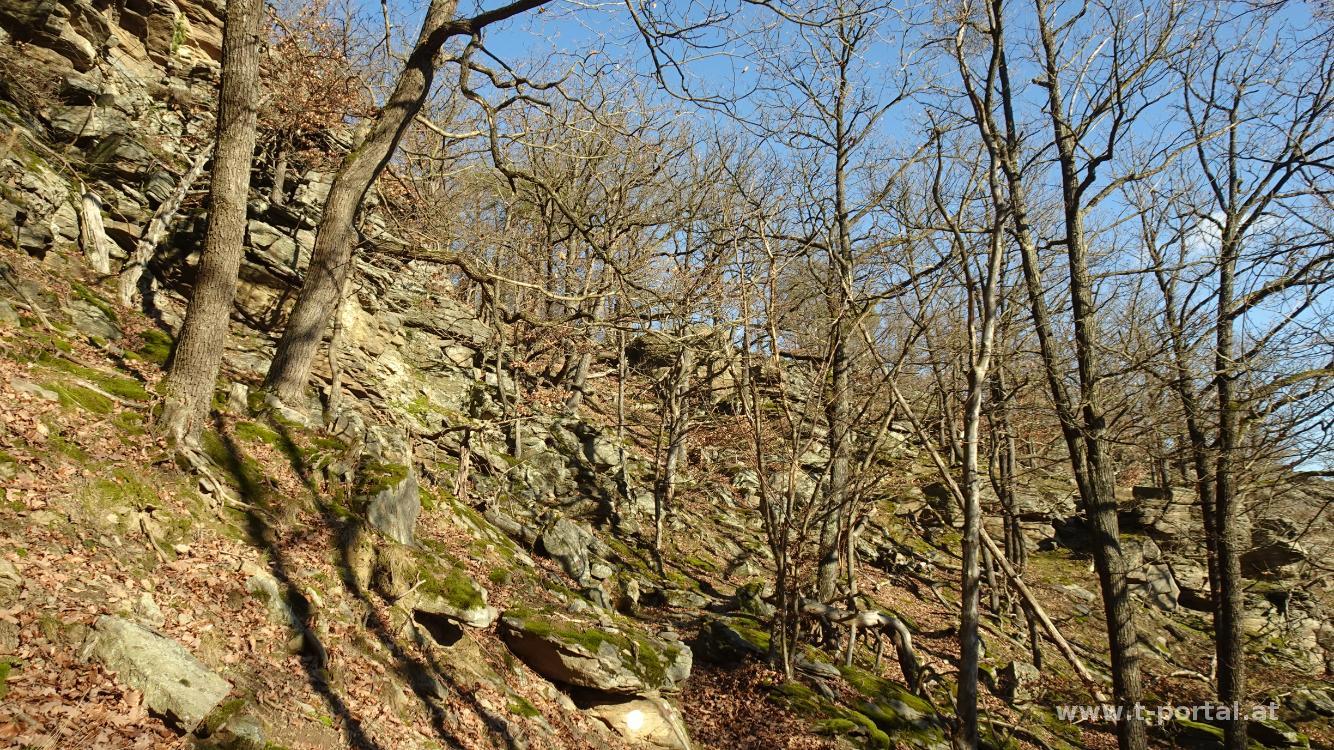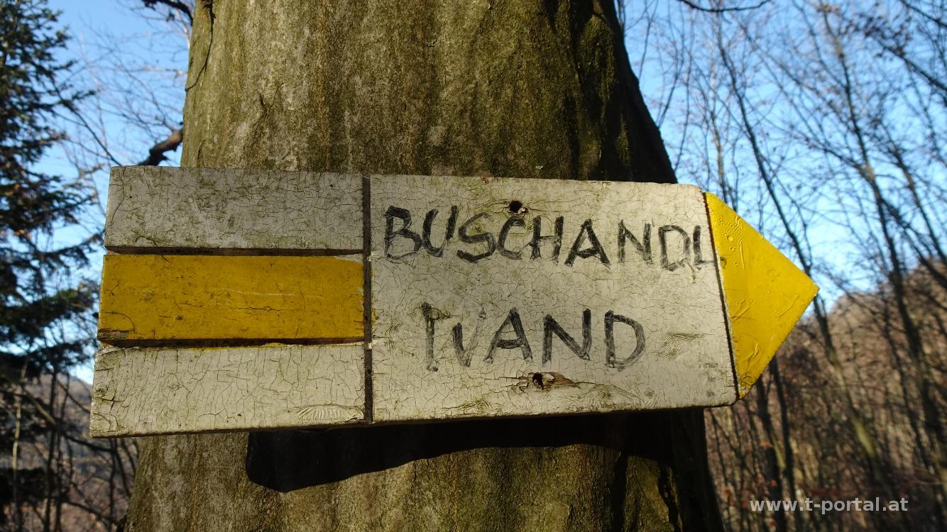 Die letzten Jahre (mit einer Ausnahme) waren wir zu Silvester immer in der Wachau unterwegs. So auch heute. Von St. Michael geht es auch die Buschandlwand. Wir starten bei der Kirche, gehen kurz durch den Ort und über die Bahntrasse. Von dort beginnt der Anstieg durch den schattigen und feuchten Wald. Wenig später sind wir aber schon wieder in der Sonne unterwegs. Im Hang geht es immer wieder etwas auf und ab. Zuerst wandeln wir auf schmaleren Pfaden danach folgen wieder Forstwege. Wir verlassen den Welterbesteig, der hier nach Spitz weiter führt, und folgen der gelben Markierung aufwärts. Es folgen weitere Forststraßen und Kehren und dann das letzte Stück steiler hinauf und dann nach links zur Aussichtswarte.