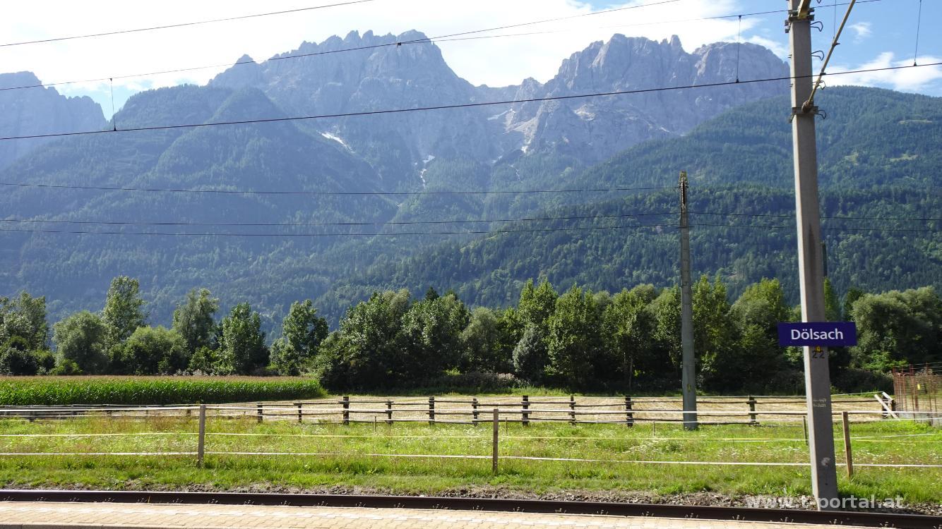 Anschließend über Almwege, über Wiesen und durch Wald weiter abwärts, bis wir eine Forststraße erreichen. Dies führt uns noch ein Stück hinab, während wir bereits die Häuser von Dölsach sehen. Wir erreichen einen Bauernhof, bei dem die Asphaltstraße beginnt. Dieser folgen wir vorbei an einigen Häusern. Weiter unten entdecken wir eine Rodelpiste neben der Straße und folgen dieser zum Freibad. Nun über die Bundesstraße und auf der anderen Seite bis zum Bahnhof in Dölsach.
